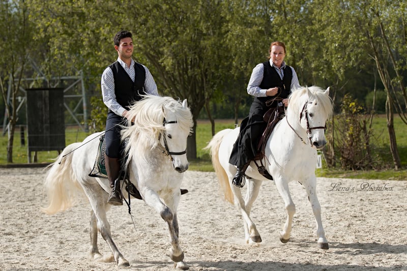 Vårt stuteri erbjuder gästerna en semester med underbara detaljer. Våra rum är turistiska och mycket enkla. Men varje rum har sin egen speciella känsla. På vårt stuteri delar husgästerna på gästbadrummet, eftersom vårt stuteri inte är ett hotell. Här sover du i sängar som Gud i Frankrike. Här står de förtrollande grå hästarna på ängarna direkt vid Issel och frammanar lite av Camargue på landsbygden. Våra hingstar och ston är förtrollande. Vår träning av ryttare och deras hästar kännetecknas av ett vänligt samspel med hästen som partner. Vi vill att ryttare ska vara disciplinerade, att hästar ska njuta av sitt arbete och att hästar ska vara nöjda med vad vi gör. För veckopriset 580 euro för ungdomar och 880 euro för vuxna får husgästen två lektioner om dagen, sover gott och får god husmanskost. På sommaren inbjuder trädgården till att lata sig och poolen till att simma och koppla av. I det lilla stuteribiblioteket finns bra litteratur om hästhållning och hästar samt romaner. En ridbana på 25 x 55 meter samt ett litet, mycket speciellt ridhus ger möjlighet till ordentlig träning på permanent basis. På sommaren använder vi en gräsbana som träningsområde. Naturparken Hohe Mark med sina underbara ridvägar genom skog och hed börjar direkt på gården efter en kort uppvärmningsfas. Den intresserade och sadelanpassade gästen kan också använda tävlingsbanan i Obrighoven mot en extra avgift på 15 euro. Allt vi behöver göra är att meddela klubben i förväg (banan är stängd från november till slutet av februari). Rummen är endast tillgängliga i begränsad omfattning, för närvarande ett stort rum med en dubbelsäng och ett litet vardagsrum, ett dubbelrum eller ett litet enkelrum. Gästrummen har inte eget badrum, gästerna måste använda gästbadrummet med dusch. Corona hygienåtgärder finns på plats. På sommaren kan du också sova mycket mysigt i poolhuset, eller alternativt i lavendelhuset precis intill ridbanan. Det finns också en toalettanläggning precis intill ridbanan, där alla hygienåtgärder också har vidtagits för att skydda mot infektion. Torrtoaletten erbjuder handdesinfektion. Vårt team ser fram emot din bokning Ungdomsvecka 580,00 Euro Träningsvecka för vuxna på begäran