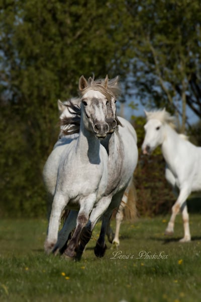 Auf unserem Gestüt bietet sich dem Gast ein Urlaub mit wunderschönen Details. Unsere Zimmer sind touristisch sehr schlicht. Aber jedes Zimmer hat ganz besonderes Flair. Auf unserem Gestüt teilen sich die Hausgäste das Gästebad, weil unser Gestüt kein Hotel ist. Hier schläft man in Betten, wie Gott in Frankreich. Hier stehen die bezaubernden Schimmel in den Wiesen direkt an der Issel und zaubern ein wenig von der Camargue ins Land. Unsere Hengste und Stuten verzaubern. Unsere Ausbildung der Reiter und ihrer Pferde ist geprägt von freundlichem Umgang mit dem Partner Pferd. Wir möchten Disziplin beim Reiter, Freude bei der Arbeit mit dem Pferd und mit unserem Tun zufriedene Pferde. Für den Wochenpreis von 580 Euro für Jugendliche, 880 Euro Erwachsene erhält der Hausgast zwei Einheiten täglich Unterricht, schläft hervorragend und wird mit guter Hausmannskost versorgt. Im Sommer läd der Garten zum faulenzen und der Pool zu Schwimmen und Entspannung ein. Die kleine Gestütsbibliothek ist mit guter Literatur über Reitkunst und Pferde wie auch mit Romanen bestückt. Ein Reitplatz 25 x 55 m wie auch eine kleine sehr besondere Reithalle ermöglichen dauerhaft ordentliches Training. Im Sommer nutzen wir einen Grasplatz als Trailtrainingsfläche. Direkt am Hof beginnt nach kurzer Warmreitphase der Naturpark Hohe Mark mit wundervollen Ausreitwegen durch Wald und Heide. Der interessierte und sattelfeste Gast kann gegen 15 Euro Aufpreis auch auf der Vielseitigkeitsstecke in Obrighoven benutzen. Hierzu müssen wir dies lediglich vorher beim Verein anmelden (von November bis Ende Februar ist die Strecke geschlossen). Zimmer sind nur begrenzt buchbar, derzeit ein großes Zimmer mit Doppelbett und kleinem Wohnzimmer, ein Doppelzimmer oder ein kleines Einzelzimmer. Gästezimmer haben keine eigene Nasszelle, Gäste müssen das Gästebadezimmer mit Dusche nutzen. Für Corona-Hygienemassnahmen ist gesorgt. Im Sommer schläft man zusätzlich sehr niedlich im Poolhaus, alternativ im Lavendelhaus direkt am Reitplatz. Direkt am Reitplatz befindet sich zudem eine Toillettenanlage, in der ebenfalls alle Hyienemassnahmen zum Infektionsschutz vorgenommen wurden. Die Trockentoillette bietet Handdesinfektion. Unser Team freut sich über Ihre Buchung Jugendwoche 580,00 Euro Trainingswoche für Erwachsene auf Anfrage