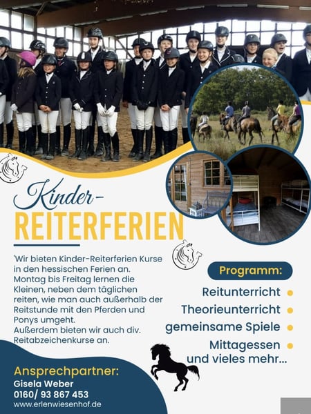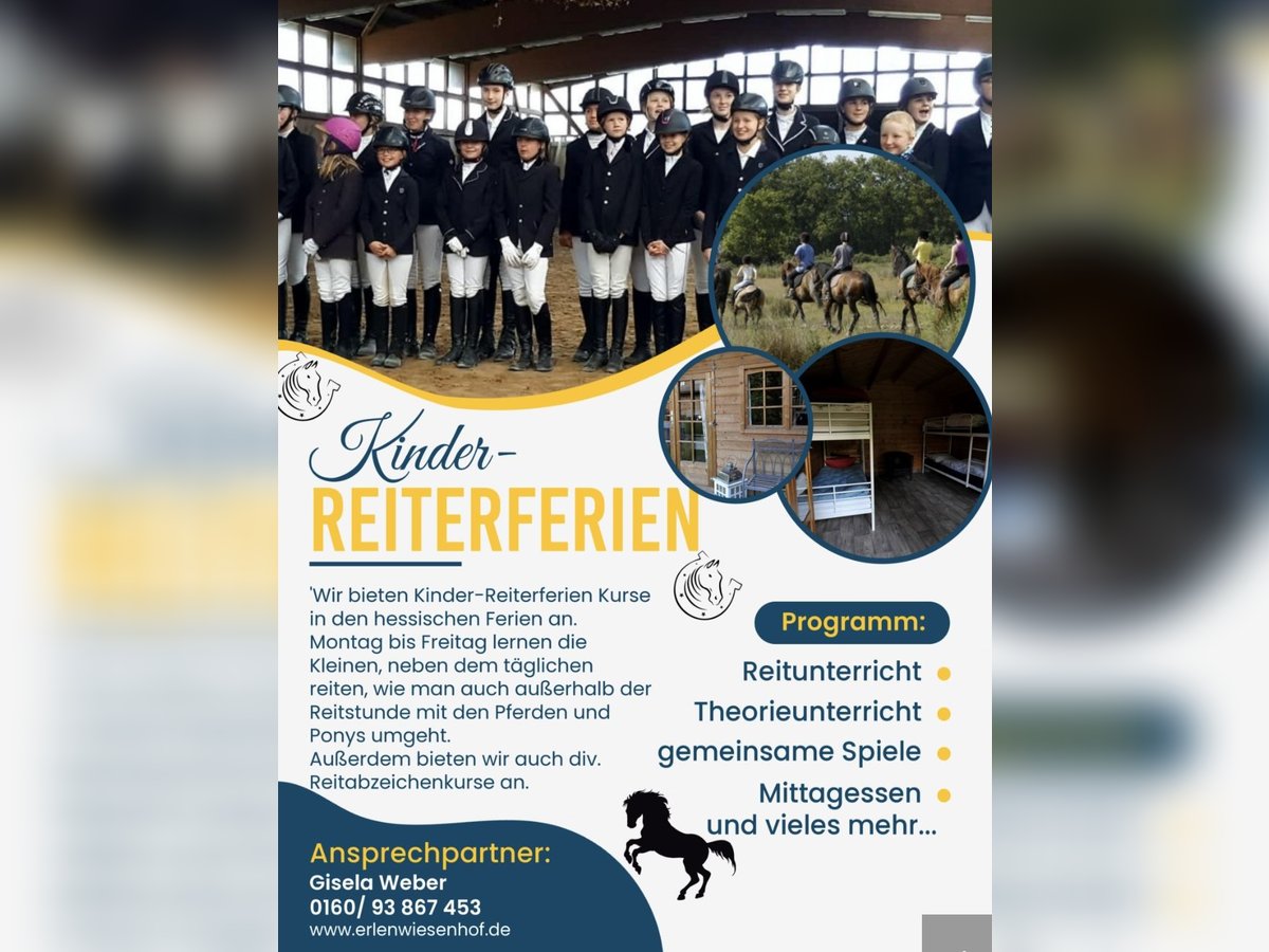 Springen: Wir bieten Springunterricht vom Anfänger bis zum Fortgeschrittenen auf Schul- und Privatpferden. In Kleingruppen gemeinsam lernen von Basic Trainings für Anfänger über Gymnastikspringen und Parcour für Amateure. Auch beim Training und Ausbildung junger, unerfahrener Pferde stehen wir gerne zur Verfügung. Dressur: Wir bieten Dressurunterricht vom Anfänger bis zum Fortgeschrittenen auf Schul- und Privatpferden. Für Kinder ab 4 Jahren bieten wir Pony Longestunden an. Je nach Leistungsniveau bieten wir Ihnen auf dem Pony oder Großpferd von Longestunden bis Abteilungsreiten und bei Interesse auch Turnierreiten an. Reiterferien: Wir bieten Kinder Ferienwochen in den hessischen Schulferien. Montag bis Freitag lernen die Kleinen, neben dem täglichen Reiten , wie man mit den Pferden und Ponys auch außerhalb des Reitens umgeht. Beritt und Turniervorstellung: Die Leidenschaft für Pferde wurde Jan-Carsten Weber bereits in die Wiege gelegt. Die Affinität zum Springreiten entdeckte er aber erst ein wenig später. Ab diesem Zeitpunkt wurde er stets von seiner Familie unterstützt und gefördert. Einer seiner Trainer zu dieser Zeit war Dirk Hafemeister. Seine Ausbildung zum Pferdewirt absolvierte er beim DOKR in Warendorf. Dabei sammelte er u.a. Erfahrung beim Ausbilden junger Reiter und deren Pferde. Auf Turnieren stellt er besonders die Junghengste, die auf dem Erlenwiesenhof stationiert sind und Pferde aus der eigenen Zucht vor. Der Erlenwiesenhof, der bekannt für Zucht und Aufzucht von Springpferden im Rhein-Main Gebiet ist, bat Jan die Möglichkeit ausreichend Erfahrung, Geduld und Entschlossenheit im Bereich Beritt (u.a. Anreiten und korrektur) zu sammeln. Neben Springunterricht auf Schul-und Privatpferden bietet Jan Berittplätze (je nach Verfügbarkeit) und Turniervorstellungen an. Jungpferdeaufzucht: Jahrelange Erfahrung – Wissen, Beobachtung und vieles mehr – trägt dazu bei, das man mit Knut Weber einen Profi im Bereich der Pferdezucht als optimalen Ansprechpartner mit Fokus auf den Springsport hat. Neben den talentierten Deckhengsten, die nach großer Überlegung ausgewählt wurden und auf dem Erlenwiesenhof stationiert sind, wird natürlich auch auf die Stute ein besonderes Augenmerk gelegt, um die bestmöglichen Fohlen zu züchten und aufzuziehen. Bei Bedarf wird die Stute von Beginn bis hin zur Absetzung des Fohlens betreut. Anschließend gehen die Fohlen in Gruppen auf die Wiese bis sie alt genug sind zum Anreiten.