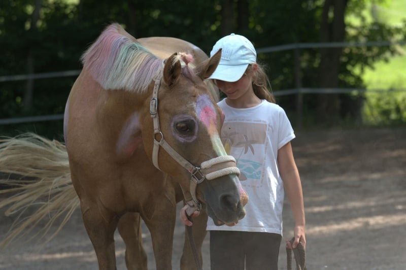 Wir bieten traumhafte Reiterferien für Mädchen... wer einmal da war kommt in der Regel jedes Jahr wieder. Das nehmen wir als großes Lob! Wir bieten fachkundigen Reitunterricht auf sehr gut ausgebildeten Pferden und Reitponys, Ausritte, Spannung - Spiel - und Überraschung... Reiterspiele, Voltigieren, Lagerfeuer und Nachtwanderung, verschmuste Fohlen und Hunde die sich auf euch freuen. Bei uns kommen jedes Jahr 10 Fohlen zur Welt vielleicht habt ihr Glück, dann dürft ihr dabei sein! Oft haben wir auch Welpen... oder junge Kätzchen! Jeder bekommt ein Pflegepferd, auf Wunsch auch eine der Stuten mit Fohlen - ihr könnt pflegen und lieben.... schmusen und streicheln. Und natürlich ist der Reitunterricht auf jeden Reitstand angepasst! Jeder wird in der Woche einiges lernen und mit nach Hause nehmen.