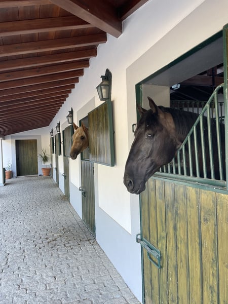 Wir teilen mit wenigen reitbegeisterten unseren Lebenstraum den wir uns im Jahr 2020 realisiert haben. Sie wohnen direkt auf unserem Gestüt in einem exklusiven Gästehaus ( mit eigener Küche ), genießen die Natur ( Pinien- und Korkeichenwälder ), unsere 24 Gestütspferde ( vom Fohlen bis GP-Pferd ), können täglich Reitunterricht und/oder Ausritt genießen. Lissabon, Strände, viele Sehenswürdigkeiten in 40 Minuten erreichbar und bequem mit Fahrrad ( oder zu Pferd😉) ist unser typisch portugiesisches Dorf mit Einkaufsmöglichkeiten und Gastronomie erreichbar. Im November wird es ein spezielles Arragement mit Teilnahme beim Reiterfestival in Golega geben. Preis pro Woche bei 2 Personen Belegung im Gästehaus mit 80 qm Wohnfläche und 2 mal 5 Reiteinheiten/ flexibel wählbar Dressurunterricht oder Ausritt. Unser professioneller portugiesischer Reittrainer verfügt auch über internationale Erfahrung ( Deutschland und Dänemark ). HP zusätzlich auf Anfrage möglich.
