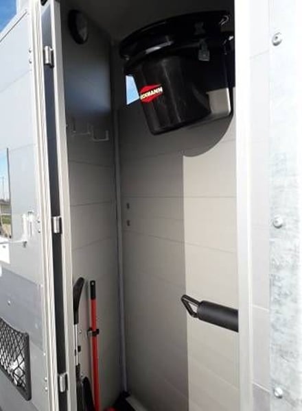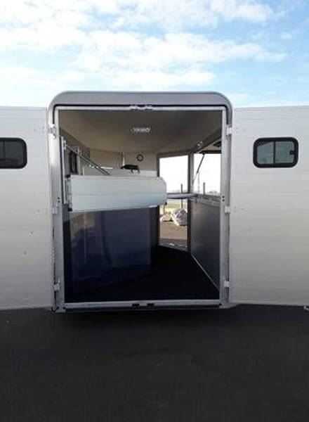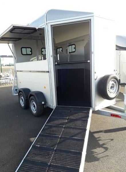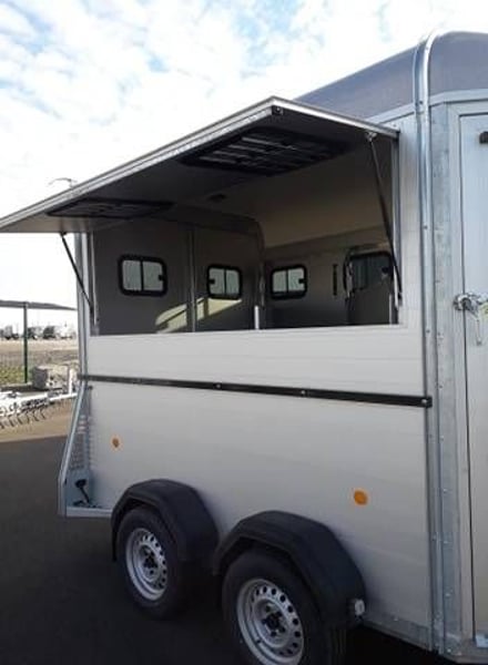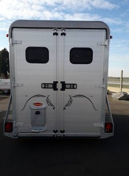 Bockmann Traveller G2 Comme sont nom l’indique, le van Traveller G2 Bockmann, est un van conçu pour voyager 2 grand chevaux dans un maximum de confort et de sécurité. Avec une conception robuste garantie par 3 arceaux de sécurité, un plancher en aluminium massif, un châssis en acier galvanisé, des roues en acier de 14 pouces, des parois en aluminium annodisé, il vous garantira une longévité de vie imcomparrable. Caractéristiques: – 2 places – Toit polyester – Parois aluminium – 2 portes arrière avec fenêtre (fermeture à clef) ou pont arrière avec bâche automatique – Sellerie avant avec 2 porte selles telescopiques / porte bride / support de cravache / étagère / miroir / mangeaoires / pelle / balais / montoir. Fermeture à clef 3 points – 2 Bat flanc réglables , télescopique en aluminium – 2 grandes baies coulissantes à droite avec grille de protection – 2 petites baies coulissantes à gauche – 1 aérateur de toit – 2 lumières intérieur LED (Bleu/Blanc) – Pare-bottes composite – Tapis caoutchouc antidérapant – 2.40m de hauteur interieur – 2m de largeur intérieur – 3.60m de longueur interieur – PTAC 2700Kg – Poid à vide 1300Kg – Charge utile 1400Kg Options disponibles: – Pont avant – Rangement supplémentaire sous plafond – Jantes aluminium – Hayon latéral – Auvent – Etc…