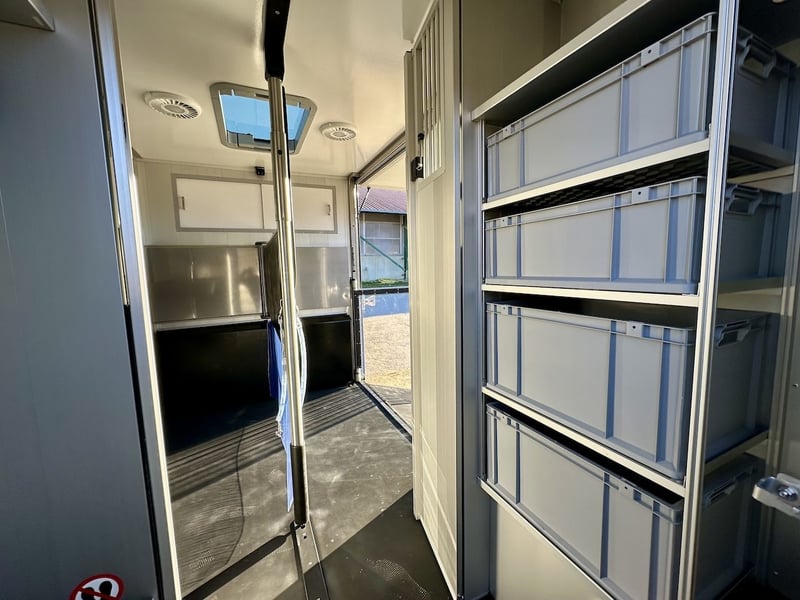 SOFORT VERFÜGBAR – FINAL DELUXE EDITION 2025 - Automatikgetriebe Roelofsen Parados Sport – Ihr zuverlässiger 2-Pferdetransporter auf Ford Transit-Basis Grundpreis des Fahrzeugs in weiß inkl. deutscher TÜV-Prüfung 79.900, - € netto (zzgl. 19% MwSt.) Der Roelofsen Parados Sport ist die perfekte Kombination aus Sicherheit, Komfort und Effizienz. Mit seinem leistungsstarken 165 PS Diesel-Motor (Euro 6d-TEMP) und Automatikgetriebe bietet er entspanntes Fahrvergnügen. Das zulässige Gesamtgewicht von 3,5 Tonnen (optional auflastbar auf 4,1 Tonnen) ermöglicht eine mautfreie Nutzung in vielen Ländern. Modernste Assistenz- und Sicherheitssysteme sorgen für ein sicheres Fahrgefühl – egal, ob auf kurzen Strecken oder langen Turnierreisen. Durchdachtes Pferdeabteil – sicher & komfortabel • Platz für bis zu zwei Pferde • Gepolsterte Trennwand mit flexiblem, verschiebbarem System • Rutschfester Gummiboden für maximale Sicherheit • Kickschutz an den Wänden zum Schutz der Pferde • Seitliche Rampe mit Klappe und Begrenzer mit PVC-Behang • Pferdeüberwachungssystem mit integrierter Rückfahrkamera • Großzügige Sattelkammer – perfekt organisiert • Regalsystem mit praktischen Kisten • Trensen- und Sattelhalter für optimale Ordnung • Viel Platz für weiteres Equipment Der gesamte Aufbau besteht aus robusten Aluminium-Paneelen, die für eine hohe Wertbeständigkeit sorgen und zugleich das Eigengewicht gering halten. Dies garantiert ein stabiles, leicht zu manövrierendes Fahrzeug mit erstklassigen Fahreigenschaften. Sonderausstattungen des Fahrzeugs (nicht im Grundpreis enthalten): • Drehbares Kopfteil an der Trennwand • Türen zwischen Pferdebereich und Sattelkammer • Abnehmbare Füttertröge an der Wand • Kameraüberwachung im Pferdeabteil inkl. Rückfahrkamera • Temperaturüberwachung mit Anzeige im Fahrerhaus • LED-Scheinwerfer hinten • Glas-in-Glas Design Fenster • Sitzheizung Fahrersitz • Ultra-Ledersitze: mocca • Beschriftung "Horses" vorne und hinten • Breiter Auftritt hinten • FORD Raptor-Grill • Anhängerkupplung (2.500 kg Anhängelast) • Kabine und Aufbau in Metallic-Farbe (ohne Kunststoff-Kabinenteile) • Lackierung einzelner Kunststoffteile und des Raptor-Grills Gesamtpreis des Fahrzeugs inkl. Sonderausstattungen, deutscher TÜV-Prüfung und Überführung 92.275, - € netto (zzgl. 19% MwSt.) Leasing oder Finanzierung ab 1.199 € netto/Monat ohne Anzahlung für 48 Monate Weitere Informationen & Bilder auf Anfrage! (Irrtümer und Zwischenverkauf vorbehalten.)