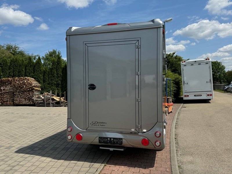 2 remorques pour chevaux avec compartiment pour selles 2,7t Équipement : 2 places standard avec compartiment pour selles châssis galvanisé poids total autorisé 2700 kg ; poids à vide (1215 kg) plancher en aluminium avec profils Snaplock collés avec tapis en caoutchouc spécial ; panneaux latéraux et de toit entièrement isolés de 30 mm d'épaisseur, design frontal aérodynamique porte d'entrée verrouillable à droite avec marchepied pliable rampe latérale avec clapet de ventilation au-dessus 2 fenêtres à guillotine au niveau des têtes des chevaux 1 fenêtre coulissante longitudinale en face ; 1 grande trappe de toit paroi de séparation réglable avec appui de cou plaque sur la rampe barre de poitrail amovible continue une grande porte extérieure à l'arrière compartiment pour selles à l'avant avec banquette pliable, 2 étagères à couvertures, support pour brides et support de selle pivotant papier COC Vidéo+++++Vidéo+++++ https://youtu.be/I9t9Be9Mprg Équipement spécial : en supplément coussins latéraux caméra vidéo sans fil prise extérieure 220 volts planches en aluminium sur la rampe roue de secours montée Disponible immédiatement Visite uniquement sur rendez-vous Demandes au 01606106131--00491606106131