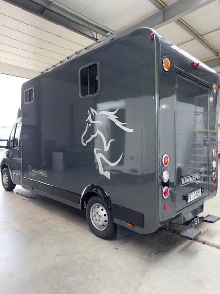 Bonjour ! Nous avons une nouvelle voiture hippomobile avec carrosserie pour deux chevaux à vendre. Spécifications de la carrosserie Bannert HORSE TRUCK : Carrosserie avec dimensions intérieures 3700x 2050 x 2295 mm Opel MOVANO / DMC 3500kg Caractéristiques de la carrosserie du conteneur : ⦁ conteneur adapté individuellement au modèle de véhicule ⦁ parois et toit en panneaux sandwich, constitués d'un stratifié blanc comme couche intérieure et extérieure et comme âme couches intérieure et extérieure et âme en XPS - matériau résistant à l'humidité ⦁ plancher, qui fait partie intégrante du conteneur - tapis en caoutchouc spécial renforcé ⦁ parois et toit recouverts de profilés en aluminium, laqués en blanc ⦁ spoiler de toit avec carénages ⦁ Rampe latérale d'embarquement pour chevaux 2000mm ⦁ Éclairage intérieur à diodes électroluminescentes ⦁ Paroi avant renforcée par des panneaux en aluminium ⦁ Ouverture de la fenêtre de toit ⦁ Trois fenêtres de chaque côté de la carrosserie ⦁ Ventilateur d'alimentation/évacuation 12V ⦁ Barre de crochet ⦁ Éclairage du compartiment à bagages ⦁ Porte arrière centrale ⦁ Triple éclairage arrière à LED ⦁ Parois doublées ⦁ Ventilation séparée ⦁ Caméra de recul ⦁ Cloison entre les chevaux ⦁ Cloison de séparation avec porte pour les têtes ⦁ Lumière pour calmer le cheval pendant l'équitation lampe "UV" bleue ⦁ Caméra dans l'espace réservé aux chevaux ⦁ Grilles de ventilation ⦁ Toutes les pièces métalliques sont en acier inoxydable - poli