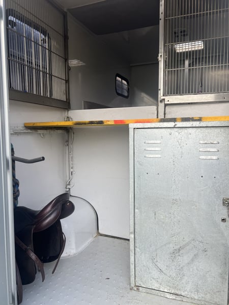 For sale: Renault Master Compact 2-Horse Trailer Year of manufacture 2009, only 94,800 miles! New TÜV, new tires, very well maintained condition. ☀️Top Features:☀️ ➡️ Versatile for large and small horses:➡️ Aluminum construction and floor, usable without partition bars ➡️ Comfortable:➡️ Walk-in tack room, air conditioning, sliding window, roof window, cruise control ➡️ Safe:➡️ Interior and rearview camera, side, rear, and front tread protection ➡️ Spacious:➡️ 5 seats, sleeping cabin, maximum gross weight 3,500 kg, trailer hitch 2,250 kg ➡️ Practical:➡️ LED interior lighting, side padding, sliding partition wall Please contact us for further questions. Price plus 20% VAT. Perfect for your transportation needs – act now! Registered in Austria