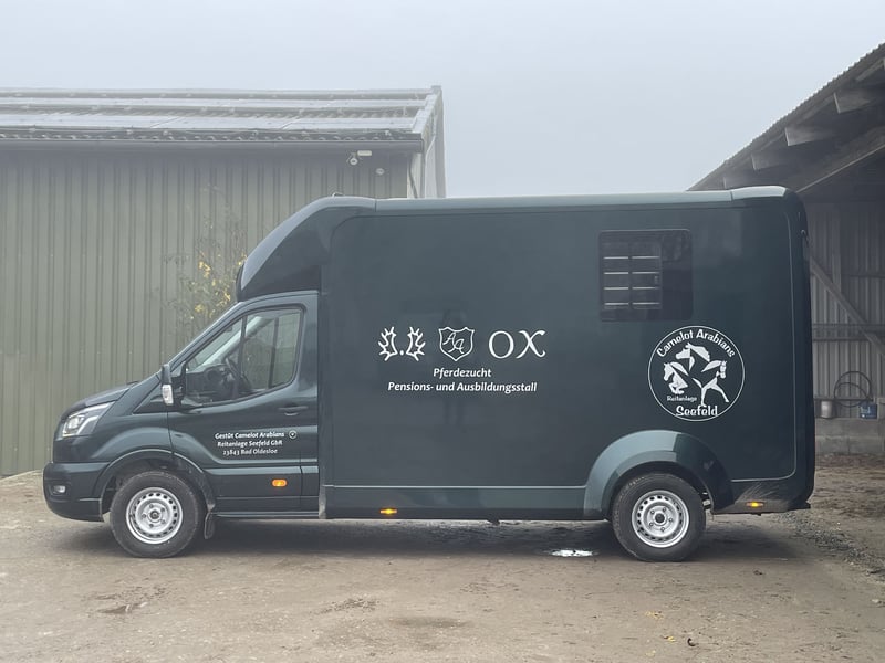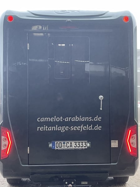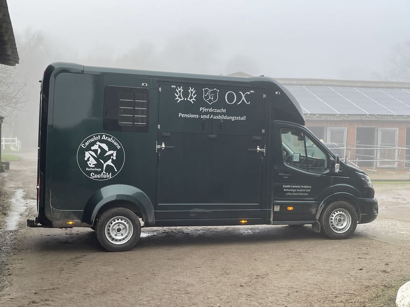 Well-maintained 3.5-year-old 2-horse transporter from first owner. Only 26,000 km, stallion equipment, tow bar, set of two tires on rims, original price €87,000. VAT deductible.