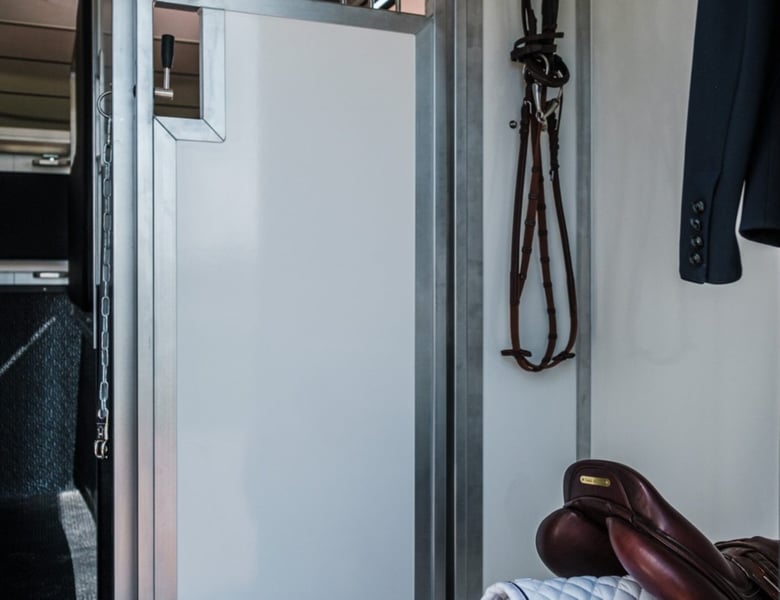 Marque : AKX Châssis: Opel Movano Poids: 3.5T Puissance (CV): 165 Chevaux: 2 Dimensions: 2.1 x 6.2 x 2.8 m Espace Cab Sièges avec accoudoirs Radio / MP3 / Bluetooth - GPS Vitres et rétroviseurs électriques Verrouillage central Attelage de remorque Climatisation Régulateur de vitesse Feux de brouillard Espace Cheval Cloison ajustable Ventilation Fenêtre de toit et fenêtre latérale Eclairage LED bleu/blanc Sellerie avec porte-selles et porte-brides Revêtement de sol en caoutchouc Enregistrement de la température Tuyau d'eau Fixation des chaînes Brand: AKX Chassis: Opel Movano Weight: 3,5T Power (HP): 165 Horses: 2 Dimension: 2.1 x 6.2 x 2.8 m Cabin Seats with armrests Radio / MP3 / Bluetooth - GPS Electric windows and mirrors Central locking system Trailer hitch Air conditioning Cruise control Fog lights Horse Area Adjustable partition Electrical air extractor Skylight and lateral windows LED lighting blue/white Tackroom with saddle and bridle holders Rubber flooring Temperature registration Water hose Fastening chains Brand: AKX Chassis: Opel Movano Weight: 3.5T Power (HP): 165 Horses: 2 Dimensions: 2.1 x 6.2 x 2.8 m Cabin Seats with armrests Radio / MP3 / Bluetooth - GPS Electric windows and mirrors Central locking Trailer hitch Air Conditioning Cruise Control Fog lights Horse section Adjustable separation Electric air extraction system Skylight and lateral windows LED lights blue/white Tack room with saddle and bridle holders Rubber floor Hydra Temperature recording Attachment chains