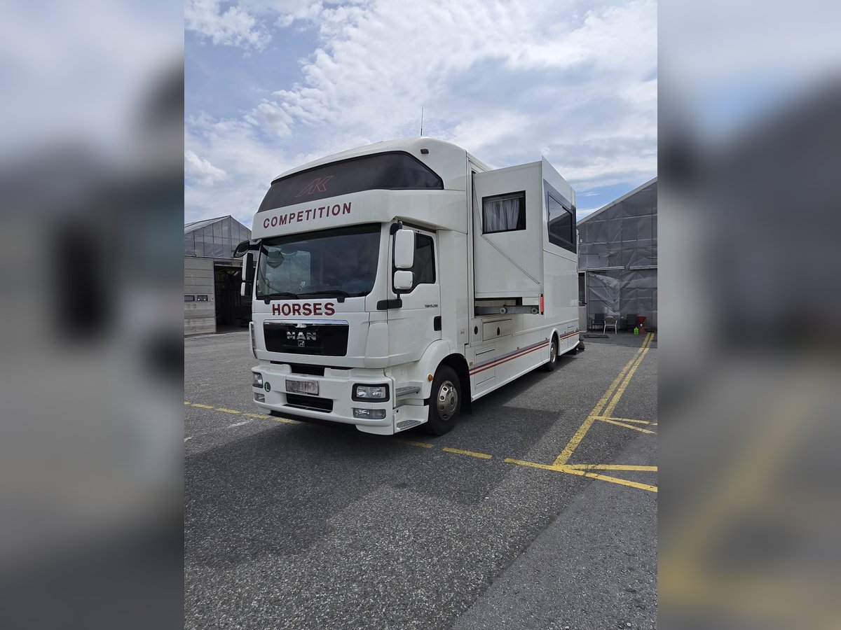 MAN TGM 15.290 4x2 LL – Aménagement AK, première mise en circulation 2012, Pop Out, pour 5 chevaux