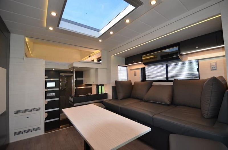 Mercedes ACTROS 2017 – 47.000 km Ausgezeichneter Zustand 🚛 Allgemeine Merkmale • Automatikgetriebe • Dieselantrieb • Bordcomputer • Klimaanlage • Luftfederung vorne und hinten • Elektrische Fenster • Fernlichtbalken (Lichtbalken) • Ledersitze • Tempomat • Bluetooth-Radio • Doppel-Kugelkopf • Aufbau: STX EXCLUSIVE • Kapazität: 5 Pferde 🐎 Pferdebereich • Heck- und Seitentür • Seitenschutzstangen • Sattel- und Deckenhalterungen • Gummiboden • Dachbelüftung • Elektrische Belüftung • LED-Beleuchtung (blau/weiß) • Kameras (Pferdebereich + Rückfahrkamera) • Mehrere Staufächer 🏠 Wohneinheit • Doppel-Schiebetür (slide-out) • Aufstelldach mit Dachfenster • Dachfenster im Wohnbereich • Ledersofa mit Poufs • Zusätzliche Sitzbank im Durchgang zur Kabine • Fernseher mit Soundbar • Arbeitsplatte • Kühlschrank, Kochfeld, Mikrowelle • Edelstahlspüle mit Mischbatterie 🛏️ Schlafplätze • Bett über der Kabine (mit TV) • Bett im Wohnbereich • Bett über dem Bad • Schlafplatz für Groom (klappbar) mit Zugang vom Pferde- und Wohnbereich • Fernseher • Fenster mit Verdunkelung • Steckdose 🧳 Stauraum • Kleiderschrank mit mehreren Fächern • Stauraum unter den Sofas • Mehrere Steckdosen ❄️ Klima & Komfort • Umkehrbare Klimaanlage im Wohnbereich • Dometic-Klimaanlage über dem Badezimmerbett • Fußbodenheizung 🚿 Badezimmer • Großes Duschbad • Waschbecken mit Stauraum • Elektrischer Handtuchwärmer ⚡ Technische Ausstattung • R Marine Bedienpanel • Kabola-Warmwasserboiler (Warmwasser + Heizung) • Haushaltsbatterien • Victron-Batterielader • Elektrenschrank (Sicherungen & Automaten) • Onan-Dieselturbine