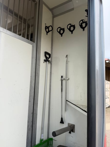 Exklusiver STX Pferdetransporter für 2 Pferde – Premium-Ausstattung mit Schlafplatz & Doppelkabine Zum Verkauf steht ein hochwertiger Pferdetransporter der absoluten Top-Marke STX (Stephex) auf Basis eines Opel Movano. Dieses Fahrzeug ist die ideale Lösung für Turnierreiter, die Wert auf Komfort für Mensch und Tier legen, aber dennoch flexibel mit dem PKW-Führerschein (Klasse B) unterwegs sein möchten. Fahrzeugdaten: • Modell: Opel Movano mit STX-Aufbau • Erstzulassung: 08.03.2018 • Kilometerstand: 282.767 km • Motor: Kraftvoller Diesel (2.299 ccm) • Getriebe: [Hier eintragen: Schaltgetriebe / Automatik] • Zulassung: 3.500 kg (keine LKW-Maut, fahrbar mit Klasse B) • Fahrwerk: Ausgestattet mit hochwertigen Goldschmitt Zusatzfedern für maximale Stabilität und Sicherheit. Luxus-Ausstattung (Innenraum): • Doppelkabine: Insgesamt 5 eingetragene Sitzplätze. • Interieur: Edle, gepflegte Lederausstattung. • Top-Sleeper: Großzügige Schlaffläche über der Fahrerkabine für 1–2 Personen – perfekt für Übernachtungen auf dem Turnier. • Komfort: Klimaanlage, Navigationssystem, Radio/Bluetooth. Pferdeabteil: • Kapazität: Sicherer Transport für 2 Pferde. • STX-Qualität: Robuster Aufbau, seitliche Rampe mit Schutz-Begrenzern, verstellbare und gepolsterte Trennwände. • Boden: Rutschfester Soft-Gummiboden für sicheren Stand. • Überwachung: [Falls vorhanden: Rückfahrkamera und Innenraumkamera zur Pferdeüberwachung]. Zustand: Das Fahrzeug weist eine laufleistungsentsprechende Abnutzung auf, wurde jedoch stets gepflegt. Der STX-Aufbau ist bekannt für seine Langlebigkeit und Funktionalität. Die Reifen und Bremsen sind in gutem Zustand.
