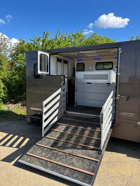 Pferde LKW / Pferdetransporter mit Wohnmobilzulassung ||keine Maut|| 110 kmh || TÜV neu Zum Verkauf steht ein gepflegter Pferde LKW mit sinnvoller Ausstattung für Transport und Aufenthalt. Wichtiger Vorteil: Wohnmobilzulassung daher keine Mautpflicht und zulässige Geschwindigkeit bis 110 kmh Fahrzeugdaten: Erstzulassung 01.03.2019 Kilometerstand ca. 40.000 km Leistung ca. 180 PS 132 kW Hubraum 4.192 cm³ Gesamtgewicht 7.000 kg Kraftstoff Diesel Getriebe Schaltgetriebe Hersteller Iveco Pferdebereich: Große Rampe mit seitlicher Absturzsicherung Dachlüfter sowie Dachfenster und Seitenfenster Beleuchtung im Pferdeabteil Pferdekamera Halterungen für Futtereimer Halterung für Gabel und Besen Sattelkammer: Waschbecken 100 Liter Wassertank mit Schlauch Sattelschrank mit Sattel und Trensenhaltern Herausziehbare Fächer Wohnkabine: Sitzbereich mit ausziehbarem Tisch Kühlschrank Mikrowelle Induktionskochplatte 2 Schlafplätze Standheizung Seitenfenster Fahrkomfort und Technik: Tempomat Klimaanlage Rückfahrkamera Anhängerkupplung Zustand: Guter allgemeiner Zustand mit üblichen Gebrauchsspuren. Bei Fragen gerne melden 01601844150