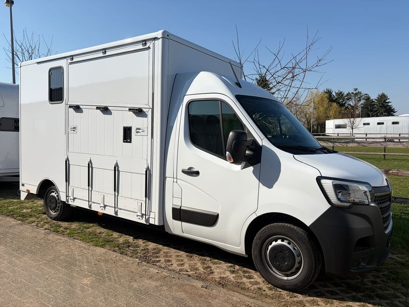 -Renault Master 2,3 Dci Tageszulassung aus 12.2025 -6-Gang Schaltgetriebe -145 PS -Klimaanlage -Radio mit Bluetooth Media -Tempomat -Multifunktionslenkrad -Kamera im Pferdeabteil -Rückfahrkamera -Anhängerkupplung -Hengstausstattung -LED Licht im Pferdeabteil -LED Licht Sattelkammer -Elektrischer Dachlüfter -2 Dachluken -Mwst ausweisbar