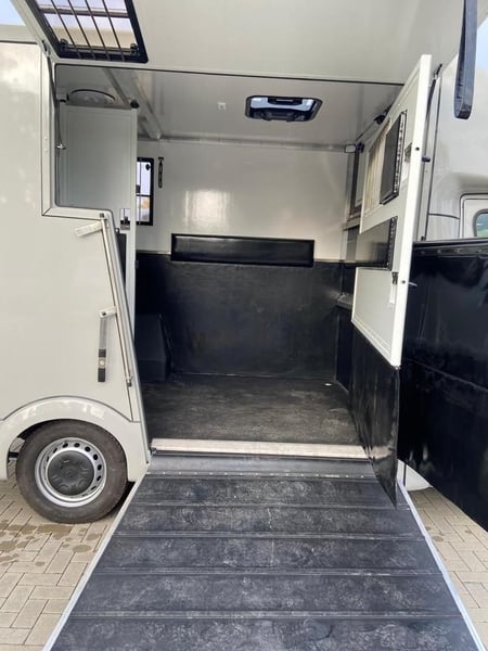 Pferdetransporter Renault Master Allgemeine Daten: - Erstzulassung bzw. Baujahr: 01/2024 - Kilometerstand Fahrgestell: 57.371 km - Zustand Pferdeabteil: Neu - Marke Fahrgestell: Renault - Größe Pferdeabteil: 2,5m länge - Motor: 140 PS - Zulassung: Pferdetransporter - Zulässiges Gesamtgewicht: 3500 kg - Auflastbar auf: / - Sitzplätze: 3 - Schlafplätze: 0 - Getriebe: 6-Gang Schaltung - Anhängerkupplung vorhanden, 2500 kg Anhängelast Ausstattungen Fahrgestell: - Reifen: guter Zustand (Allwetter 225/65/R16C) - Tempomat: Ja - Klimaanlage: Ja - Radio inkl. Bluetooth: Ja - Kamera innen und außen: Ja - Luftfederung: Ja Ausstattungen Pferdeabteil: - Anzahl Pferdestellplätze: 1-2 - Kamera Pferdeabteil: Ja - Hengstausstattung: Ja - Blaulicht und Weißlicht: Ja - Lüfter: Ja - Anzahl Dachluken und Seitenfenster: 1 und 2 - Sattelkammer: im Heck von hinten erreichbar - Sattelhalter: 2 - Spiegel: Ja
