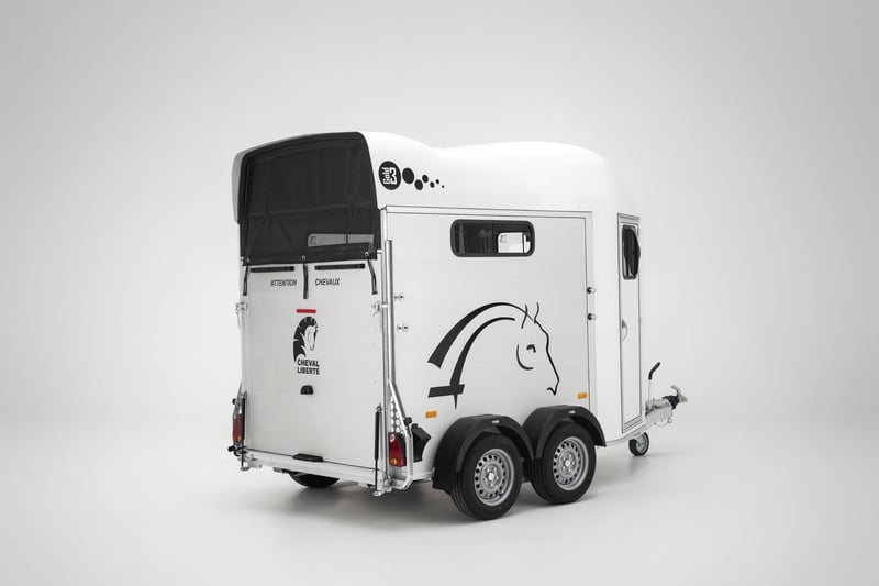 In stock colors: Blue White The Cheval Liberté Gold 3 horse trailer is a highly popular choice among horse owners and professionals due to its practicality, safety features, and elegant design. Engineered with the comfort and protection of your horses in mind, it provides advanced technology, user-friendly handling, and long-lasting durability. Key Features of the Gold 3 Trailer • Capacity: Suitable for transporting two horses • Pullman 2 Suspension System: Innovative Pullman 2 suspension ensures a smooth and stable ride, reducing vibrations and improving overall transport comfort. • High-Quality Materials: Anodized aluminum side panels and aluminum flooring (with a 5-year floor warranty) for superior durability and protection. • Ramp/Door Combination: The multifunctional rear system can be used as a ramp or door, allowing easy loading and unloading. • Ventilation: Multiple sliding windows ensure excellent airflow for the horses’ comfort. • Non-Slip Rubber Flooring: The floor is covered with sealed, non-slip rubber for increased safety. • Spacious Tack Room: Integrated tack compartment for secure and convenient storage. Technical Specifications & Standard Equipment Patented Pullman 2 chassis Reinforced fiberglass roof & front section Aluminum sides Large side access door Aluminum floor + 8 mm rubber mat Rear ramp also opens as doors + automatic roller Adjustable front and rear breast/breech bars Automatic jockey wheel with large handle Front sliding windows (tempered glass) with vents Side sliding windows 700 × 200 mm Padded side walls Kick-protected side panels Interior light Tack room Wheels 185/65R14 with steel rims Maximum total weight available up to 2600 kg + head partition + extra rubber mat 📞 Contact & Availability Trailers are available from stock or by order. For more information, please contact us: 📱 00386 40 984 220 📧 info@vprege-repnik.si Photos are symbolic 7975,00 € + VAT
