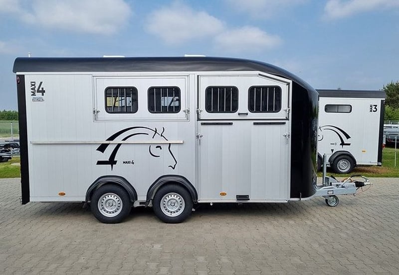 La Cheval Liberté Maxi 4 (Optimax) est une remorque conçue pour le transport de 4 chevaux en diagonale. Elle allie robustesse, confort et sécurité grâce à son châssis galvanisé, ses parois en aluminium, son plancher antidérapant et sa suspension Pullman II. Son espace intérieur modulable permet une adaptation à différentes tailles de chevaux. Elle est également équipée d’une sellerie complète et d’un casier de rangement.