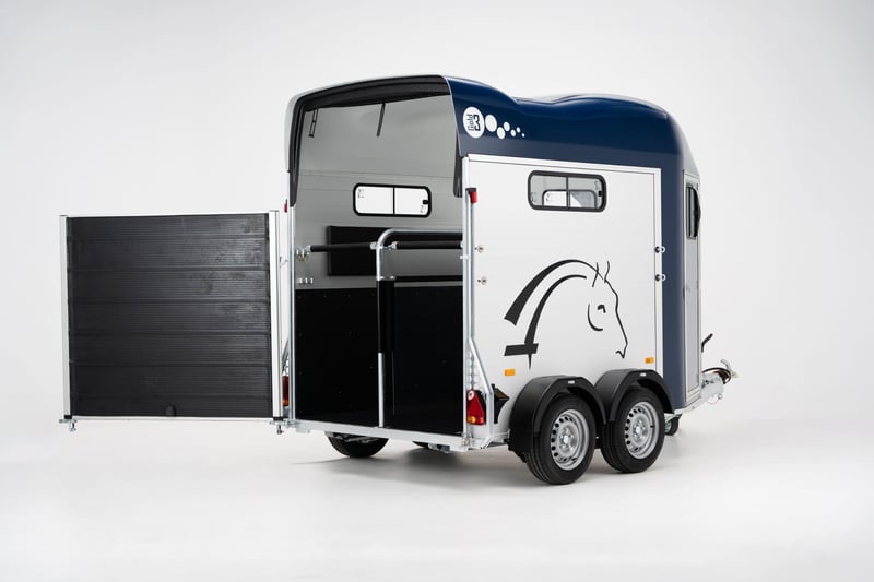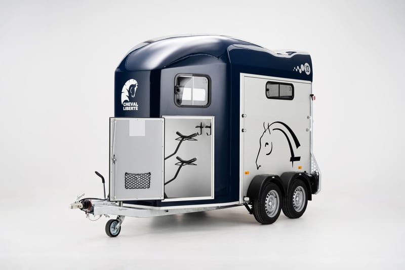 In stock colors: Blue White The Cheval Liberté Gold 3 horse trailer is a highly popular choice among horse owners and professionals due to its practicality, safety features, and elegant design. Engineered with the comfort and protection of your horses in mind, it provides advanced technology, user-friendly handling, and long-lasting durability. Key Features of the Gold 3 Trailer • Capacity: Suitable for transporting two horses • Pullman 2 Suspension System: Innovative Pullman 2 suspension ensures a smooth and stable ride, reducing vibrations and improving overall transport comfort. • High-Quality Materials: Anodized aluminum side panels and aluminum flooring (with a 5-year floor warranty) for superior durability and protection. • Ramp/Door Combination: The multifunctional rear system can be used as a ramp or door, allowing easy loading and unloading. • Ventilation: Multiple sliding windows ensure excellent airflow for the horses’ comfort. • Non-Slip Rubber Flooring: The floor is covered with sealed, non-slip rubber for increased safety. • Spacious Tack Room: Integrated tack compartment for secure and convenient storage. Technical Specifications & Standard Equipment Patented Pullman 2 chassis Reinforced fiberglass roof & front section Aluminum sides Large side access door Aluminum floor + 8 mm rubber mat Rear ramp also opens as doors + automatic roller Adjustable front and rear breast/breech bars Automatic jockey wheel with large handle Front sliding windows (tempered glass) with vents Side sliding windows 700 × 200 mm Padded side walls Kick-protected side panels Interior light Tack room Wheels 185/65R14 with steel rims Maximum total weight available up to 2600 kg 📞 Contact & Availability Trailers are available from stock or by order. For more information, please contact us: 📱 00386 40 984 220 📧 info@vprege-repnik.si Photos are symbolic.