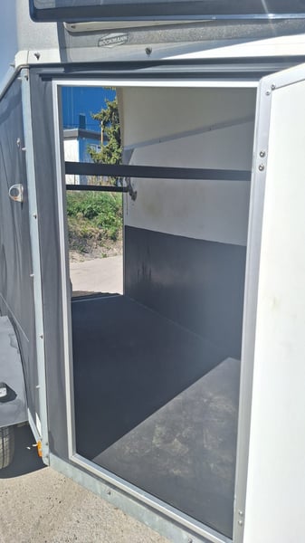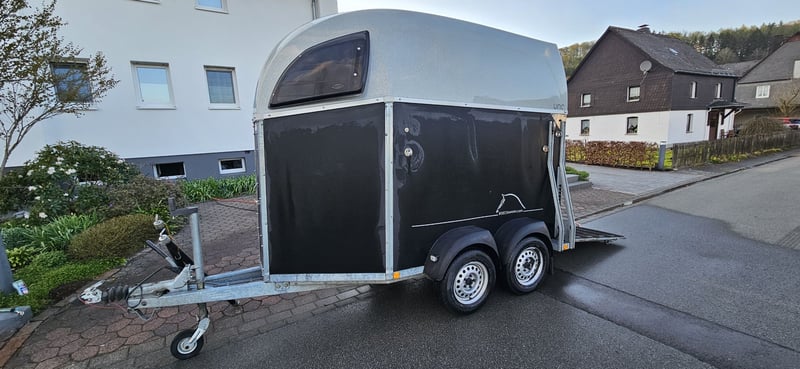 Verkaufe einen gepflegten Böckmann Pferdeanhänger Uno für ein Pferd. Wenig benutzt, gut gereinigt und erhalten. - Erstzulassung 19.6.2015 - TÜV neu bis 4/2028 - Boden Gummimatte original - Seitentrittschutz Gummimatte nachträglich eingebaut - Gummirutschstop auf der Anhängerklappe original - Halterung für Schüppe und Besen flexibel abnehmbar eingebaut - einem Anbinder mit Panikhaken - Planenabdeckung für Deichsel gibt's dazu - Kupplungsballschloß abschließbar - 2 Schlüssel inklusive auch für die Seitentür - neue Reifen seit 2024 drauf.Rechnung vorhanden. - Anhänger ist abgemeldet Privatverkauf ohne Garantie und Gewährleistung. Anhänger kann gerne besichtigt werden.