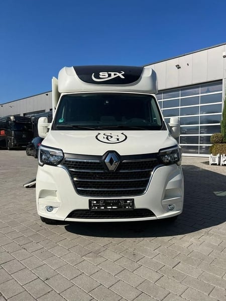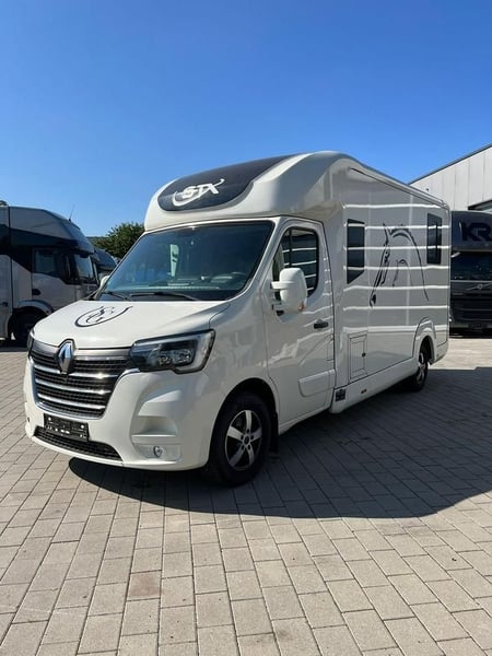 Renault Master STX Renault STX sofort verfügbar ! AUTOMATIKGETRIEBE Zulässiges Gesamtgewicht: 3.500 kg auflastbar auf 4.000 kg Anzahl Pferde: 1-2 Pferde ✅ 20 000 Km Fahrgestell: Renault Master L3H1,2.3 Liter EURO 6d 180 PS Automatikgetriebe 5- Sitzer Bereifung 225/65 R 16 Pferdeabteil: Hengstausstattung Sonderzubehör: Sonderzubehör Anhängerkupplung Kugel 2.500 kg Klimaanlage Automatik Ledersitze Schwarz Videoüberwachung/Rückfahrkamera Aluminiumfelgen Ganzjahresbereifung Nachtfahrbeleuchtung blau Navigationssystem 2x Sattelhalter 5x Trensenhalter 3x Ablagefächer Farbe: Weiß