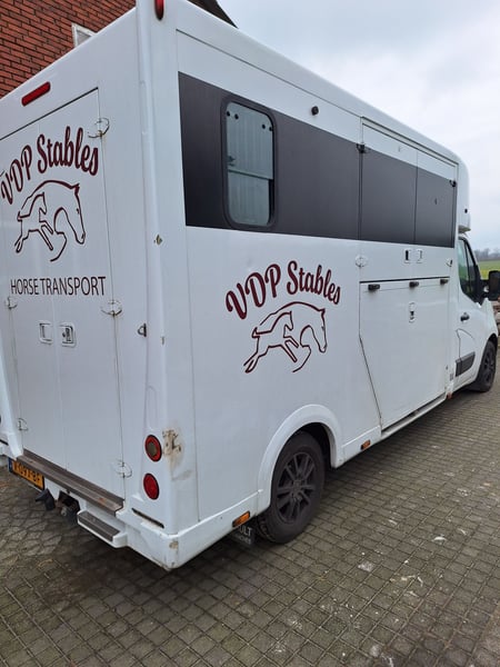 Theault 2 chevaux 3 places Renault Master avec exécution Proteo pour étalons ! Très bonne construction, robuste, sûre et fiable. Double portes à l'arrière, très pratique pour la remorque à chevaux. Bien entretenu chez le garagiste avec des contrôles et réparations effectués tous les 20 000 km. APK APPROUVÉ JUSQU'EN FÉVRIER 2026, ce véhicule n'est vendu qu'à un prix approprié, donc ce n'est pas une bonne affaire. Le prix demandé est un prix indicatif pour ce véhicule très sûr et fiable pour deux chevaux. Les offres sont les bienvenues, mais aucune réponse ne sera donnée aux offres ridicules. - Néerlandais - Voiture TVA - 02/2014 - 345 000 km - Manuelle 150 ch - Attelage - Vitres et rétroviseurs électriques - Climatisation - Régulateur de vitesse - Double portes arrière - Système de ventilation électrique dans la partie chevaux - Crochets pour licou - Supports de selle - Éclairage - Cloison amovible - Chargeur latéral - Système de caméra - Compartiment de rangement au-dessus de la cabine avec portes - Voiture TVA