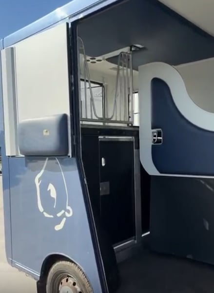 Renault Theault 41 200 km , Baujahr 2009, 150 PS, 5 Sitzplätze, Schlafkabine Schaltgetriebe, Handyladestation, Fahrer- und Beifahrer Airbag, DAB+ Radio ,110 kW ,Multifunktionslenkrad, manuelle Klima-Anlage, Bildschirm für Videoüberwachung Pferdebereich und Rückfahrkamera, Temperaturüberwachung Pferdeabteil, Lüfterregelung Pferdeabteil. B Führerschein Das Sattelstaufach kann über die Hecktüre durch ein Klappsystem betreten werden. So können Sie die Pferde bei geschlossener Rampe füttern usw. In der Sattelbox befinden sich rechts ein Ablageregal sowie 2 Sattel- und Trensenhalter links. Für Luft und Licht im Pferdeabteil sorgen ein Elektrolüfter, 2 Dachluken und 2 Fallfenster an den Pferdköpfen. Über unser Kamerasystem überwachen Sie während der Fahrt die Pferde und beim Rückwärtsfahren den Heckbereich. Das Fahrzeug ist mit einer 2,5 t Anhängekupplung ausgerüstet Nettopreis 36000.- Euro zzgl Mwst.( Felgen sind neu getauscht)