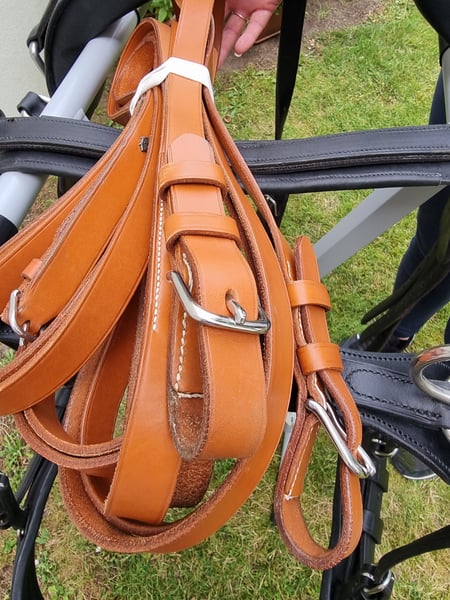 Einspänner Brustblatt-Kutschgeschirr der Sattlerei Meinecke für Warmblut.