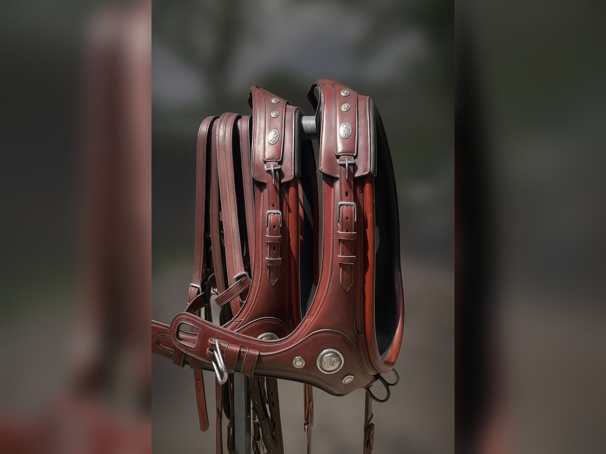 Harnais de marathon pour paire de trait, en excellent état de JG Galetka – pratiquement neuf Je mets en vente un élégant harnais de marathon pour paire de trait de la renommée marque JG Galetka. Ce harnais est presque neuf et a été utilisé uniquement lors d’événements festifs – aucune utilisation en travail ou en compétition. Ajustement : adapté pour un lourd Warmblood ou un Coldblood sportif (mélange Frison-Norvégien) Équipement : 2 kumtes (mors de trait), 2 têtes, 2 capots de mors, 4 brancards, 2 attaches de retenue État : parfaitement entretenu, peu de traces d’usure Matériau : cuir de haute qualité, souple, de couleur marron foncé, avec des ferrures en acier inoxydable Utilisation : idéal pour les traditions, les loisirs ou les attelages festifs https://youtu.be/Wp4YtpburdA?feature=shared