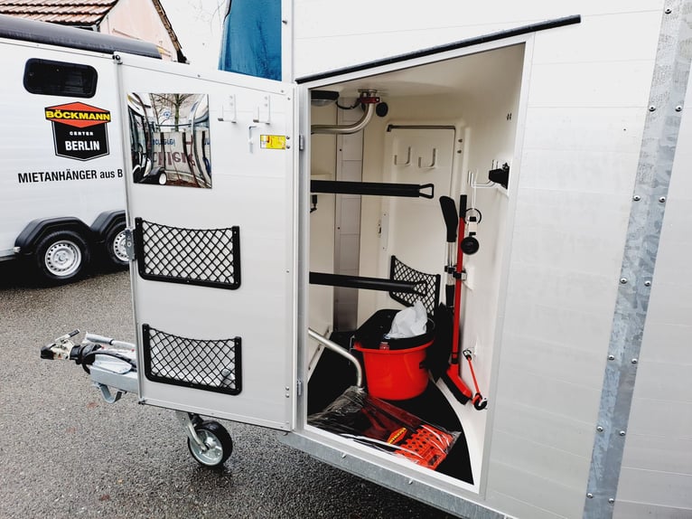 We are selling a new Böckmann Portax SKA (22) in a new design **** special color ocean-green **** - new design - more space - more interior height - 2 years Tüv free from first registration!!! - permissible total weight: 2400 kg - Payload: 1300 kg - Interior width: 175 cm - Interior length: 356 cm - Interior height: 235 cm - WCF chassis (independent suspension) 100 km/h, - Böckmann Premium aluminum rims 14" - Rear flap hinged door combination - hinged on the side, - Tack room accessible from outside and inside - Saddle holder can be rotated and swiveled - Center post partition can be swiveled at the front and rear, - Side step protection, - side padding, - Sliding side window, - Roof window, - panorama window at the front, - 1 x large entrance doors - Tarpaulin lift - Automatic support wheel - Price incl. VAT more new and used horse trailers in stock! Vehicle registration documents can be sent for registration for a €5 surcharge in advance! Delivery by arrangement, trade-in and financing possible Inspection/collection in 16845 Großderschau possible at any time by arrangement on 033875-909588! Opening hours: Monday - Friday 8.00 - 17.00 o'clock