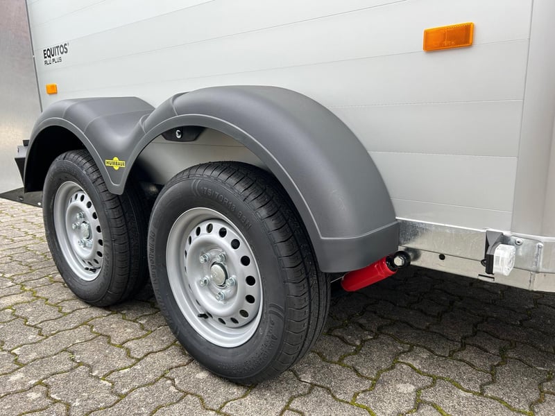 Humbaur Equitos Alu Plus Black 2000 Pferdeanhänger PKW Anhänger Alter: Neu (Produktionsjahr: 2025) 2 Jahre Hauptuntersuchung ab dem Tag der Erstzulassung Inkl. Zulassungspapiere (Kfz-Brief / Zulassungsbescheinigung Teil 2 und COC) Verfügbar ab: Sofort (auf Lager)! Finanzierung über unsere Partnerbanken möglich! Technische Daten Zulässiges Gesamtgewicht: 2.000kg Leergewicht: ca. 773kg Nutzlast: ca. 1.227kg Achsenanzahl: 2 Laderaumlänge: 3.157mm Laderaumbreite: 1.654mm Laderaumhöhe: 2.300mm Bremsenart: Gebremst, Auflaufbremse Fahrgestell: Tieflader (Räder neben Aufbau), Gummifederachsen Elektrik: 12V, 13 poliger Stecker Reifengröße: 175/70 R13 Sonderausstattung Hecktür dreh- und schwenkbar Serienausstattung EquiDrive® Fahrwerk inkl. Radstoßdämpfer (100 km/h-Zulassung) Alu-BiComp-Boden 21mm (kein Holz - unverrottbar) Gummiboden 8mm stark Seitentrittschutz Aufbau aus doppelwandigen, eloxierten Aluminiumprofilen Abschließbare Sattelkammer mit Sattelhalter, Trensenhalter, Spiegel und Netz Heckabstützung mit Beleuchtung Einstiegstür mit 3-Punkt-Verriegelung Auflaufklappe mit Trittleistengummi Geteilte und höhenverstellbare Brust- und Heckstangen mit Panikentriegelung EquiLock® verriegelbare Trennwand Getönte Ausstellfenster in Polyhaube Polyhaube in Black Metallic Innenbeleuchtung Heunetzring Windschott Automatisches Stützrad Rahmen verzinkt V-Deichsel AL-KO oder Knott Achsen und Bremsanlage Zubehör (aufpreispflichtig) Alufelgen Silver / Black Sattelablagestange für 2 Sättel (außen) Schwenkbare Sattelablage für 1 Sattel (außen) Dachfenster Fohlengitter Hecktür dreh- und schwenkbar Durchgehende Boxenstange zum Fohlentransport Trittschutzgummi für Sattelkammer Seitenpolsterung links und rechts Kopftrennwand für Mitteltrennwand Planenrollo PVC anstatt Windschott Verschleißmatte vorne Verschleißmatte hinten Anhängerschloss Reserverad 175/70 R13 inkl. Reserveradhalter Fahrzeuganlieferung deutschlandweit Zulassung deutschlandweit Überführungskennzeichen (5 Tage gültig) Hinweis Gewichtsangaben können je nach Ausstattung abweichen; Irrtümer, Zwischenverkauf und Änderungen vorbehalten!