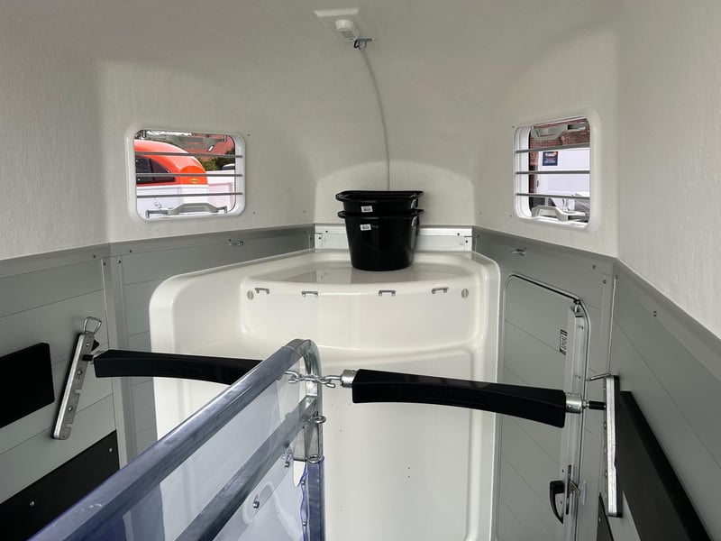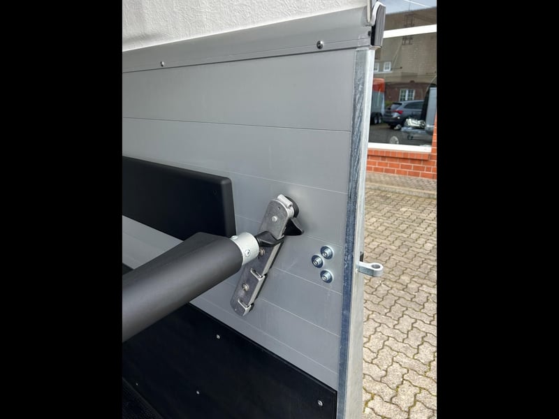 Humbaur Xanthos Aero 2400 Pferdeanhänger PKW Anhänger Alter: Neu (Produktionsjahr: 2025) 2 Jahre Hauptuntersuchung ab dem Tag der Erstzulassung Inkl. Zulassungspapiere (Kfz-Brief / Zulassungsbescheinigung Teil 2 und COC) Verfügbar ab: Ca. 6 Wochen nach Bestelleingang (unverbindlich) Finanzierung über unsere Partnerbanken möglich! Technische Daten Zulässiges Gesamtgewicht: 2.400kg Leergewicht: ca. 855kg Nutzlast: ca. 1.545kg Achsenanzahl: 2 Laderaumlänge: 3.447mm Laderaumbreite: 1.714mm Laderaumhöhe: 2.364mm Bremsenart: Gebremst, Auflaufbremse Fahrgestell: Tieflader (Räder neben Aufbau), Gummifederachsen Elektrik: 12V, 13 poliger Stecker Reifengröße: 195/65 R15 Sonderausstattung Seitenpolsterung links und rechts Abschließbare Sattelkammer mit ausziehbarem Sattelhalter, Trensenhalter, Spiegel, Netz, Innenbeleuchtung, Schaufel und Besen Serienausstattung EquiDrive® Fahrwerk inkl. Radstoßdämpfer (100 km/h-Zulassung) Alu-BiComp-Boden 21mm (kein Holz - unverrottbar) Gummiboden 8mm stark Seitentrittschutz Aufbau aus doppelwandigen, eloxierten Aluminiumprofilen Aerodynamischer Poly-Bug Heckabstützung mit Beleuchtung Einstiegstür mit 3-Punkt-Verriegelung Auflaufklappe mit Trittleistengummi Geteilte und höhenverstellbare Brust- und Heckstangen mit EquiGuard® Panikentriegelung EquiLock® verriegelbare Trennwand Getönte Ausstellfenster in Polyhaube Polyhaube und Bug in Black Metallic Innenbeleuchtung Heunetzring Windschott Automatisches Stützrad Rahmen verzinkt V-Deichsel AL-KO oder Knott Achsen und Bremsanlage Zubehör (aufpreispflichtig) Alufelgen Silver / Black Sattelablagestange für 2 Sättel (außen) Schwenkbare Sattelablage für 1 Sattel (außen) Dachfenster Fohlengitter Hecktür dreh- und schwenkbar Durchgehende Boxenstange zum Fohlentransport Trittschutzgummi für Sattelkammer Seitenpolsterung links und rechts Kopftrennwand für Mitteltrennwand Trennwand mit Holzplatte Abschließbare Sattelkammer mit ausziehbarem Sattelhalter, Trensenhalter, Spiegel, Netz, Innenbeleuchtung, Schaufel und Besen Ohne abschließbare Sattelkammer Sattelkammer Western mit Sattel-, Steigbügel- und Trensenhalter Planenrollo PVC anstatt Windschott Polyhaube in Farbe GFK-Dachheckklappe in Farbe Verschleißmatte vorne Verschleißmatte hinten Abdichtung Heckklappe gemäß EC Nr. 1/2005 Konturmarkierung Pferdeanhänger umlaufend auf Heckklappe Anhängerschloss Reserverad 195/65 R15 inkl. Reserveradhalter Fahrzeuganlieferung deutschlandweit Zulassung deutschlandweit Überführungskennzeichen (5 Tage gültig) Hinweis Gewichtsangaben können je nach Ausstattung abweichen; Irrtümer, Zwischenverkauf und Änderungen vorbehalten!