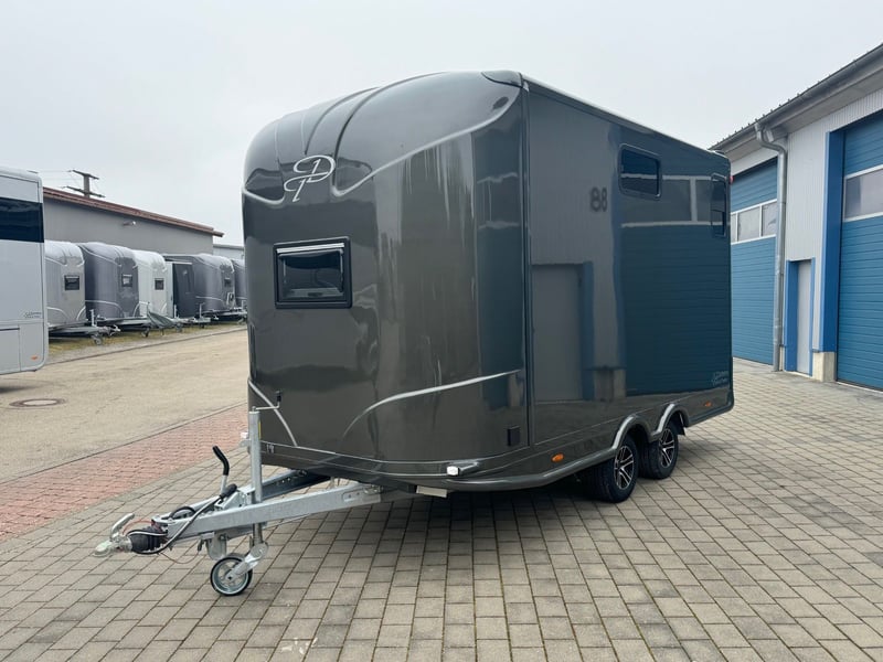 Équipement : 2 places de stationnement et compartiment de vie avec douche Nouveau van pour 2 chevaux avec compartiment de vie Poids total admissible : 3500 kg ; Soubassement en profilés d’aluminium Snaplock avec tapis en caoutchouc spécial collé ; Panneaux latéraux et de toit en poly pleine de 30 mm d’épaisseur, Design aérodynamique à l’avant, Rampe latérale en profilés d’aluminium avec caoutchouc antidérapant, ventilation par une trappe au-dessus ; Plancher en bois sur la rampe, Clôture réglable avec support pour le cou ; Porte latérale avec escalier rabattable facile à manipuler ; Grande cabine de séjour à l’avant, Deux fenêtres latérales à gauche et une à droite ; Une lucarne de toit ; Un abreuvoir fixe en dessous ; Box pour selle – sur demande avec armoire à selles mobile contre supplément ; Appartement entièrement équipé : Douche, De nombreux espaces de rangement, Micro-ondes, Réfrigérateur, Deux places assises avec table rabattable pouvant être transformée en lit superposé, Deux couchages, Évier, Fenêtres ouvrantes à l’avant. + + + Vidéo + + + Vidéo + + + Vidéo + + + https://youtu.be/totvbZVDHF4 Disponible immédiatement Livraison possible contre supplément Visite uniquement sur rendez-vous Demandes au 01606106131 -- 00491606106131 Nous avons toujours des remorques pour chevaux en stock, y compris équipements pour étalons, avec compartiment de vie ou sellerie.