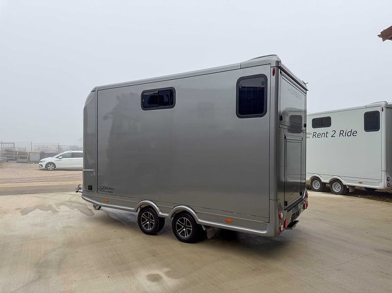 Équipement : 2 places de stationnement et compartiment de vie avec douche Nouveau van pour 2 chevaux avec compartiment de vie Poids total admissible : 3500 kg ; Soubassement en profilés d’aluminium Snaplock avec tapis en caoutchouc spécial collé ; Panneaux latéraux et de toit en poly pleine de 30 mm d’épaisseur, Design aérodynamique à l’avant, Rampe latérale en profilés d’aluminium avec caoutchouc antidérapant, ventilation par une trappe au-dessus ; Plancher en bois sur la rampe, Clôture réglable avec support pour le cou ; Porte latérale avec escalier rabattable facile à manipuler ; Grande cabine de séjour à l’avant, Deux fenêtres latérales à gauche et une à droite ; Une lucarne de toit ; Un abreuvoir fixe en dessous ; Box pour selle – sur demande avec armoire à selles mobile contre supplément ; Appartement entièrement équipé : Douche, De nombreux espaces de rangement, Micro-ondes, Réfrigérateur, Deux places assises avec table rabattable pouvant être transformée en lit superposé, Deux couchages, Évier, Fenêtres ouvrantes à l’avant. + + + Vidéo + + + Vidéo + + + Vidéo + + + https://youtu.be/totvbZVDHF4 Disponible immédiatement Livraison possible contre supplément Visite uniquement sur rendez-vous Demandes au 01606106131 -- 00491606106131 Nous avons toujours des remorques pour chevaux en stock, y compris équipements pour étalons, avec compartiment de vie ou sellerie.