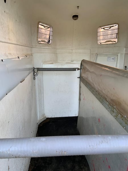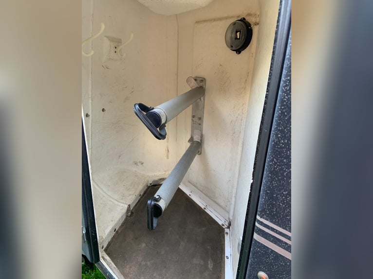 •Böckmann Comfort pour 2 chevaux •Selle de rangement avec barres de selle extensibles •Paroi centrale avec barres de poitrine et de dos réglables en longueur •Année de construction : 2004 •Contrôle technique : 05/2027 •Poids total : 2000 kg •Poids à vide : 1309 kg •Dimensions totales : 4500 mm × 2000 mm × 2740 mm •Fenêtres latérales des deux côtés •Rembourrage latéral des deux côtés •Sol en caoutchouc •Rampe de chargement avec sol en caoutchouc et barres de marche •Roulette de soutien manuelle et poignée de manœuvre •Documents du véhicule complets !Attelage et rampe de chargement renouvelés après un accident !