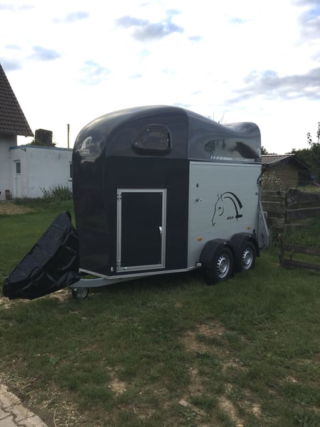 Angeboten wird ein 2er Pferdeanhänger der Marke Cheval Liberté. Der Anhänger wurde wenig genutzt und ist in einem guten Zustand. Ausstattung: •Aluboden mit Gummimatte •höhenverstellbare Boxenstangen, davon 2 Polsterrollen •Sattelkammer mit zwei Sattelhaltern und Trensenhaltern • Fenster • Automatikrollo • Trittschutz seitlich • Seitenpolster • Schwenkbare Rampe für komfortables Be- und Entladen • Pullman-Fahrwerk für besonders ruhiges und pferdefreundliches Fahrverhalten • Reserverad Daten: • Erstzulassung: 2020 • Nächster TUV/HU: 06/2026 auf Wunsch neu • zulässiges Gesamtgewicht: 2000kg (Leermasse 750kg) • Zulassung 100km/h