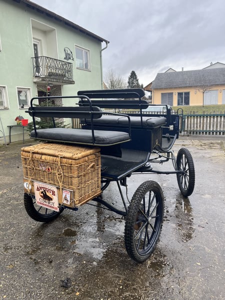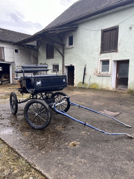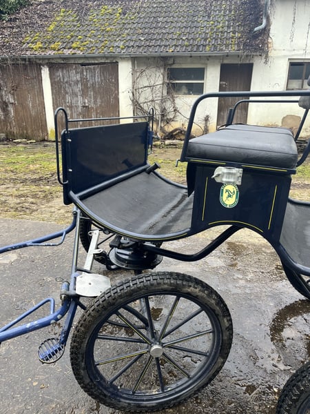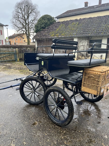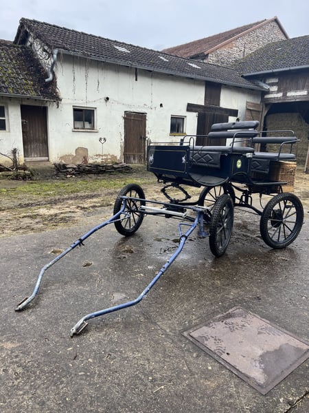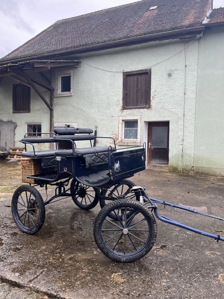 Dunkelblaue Kutsche, ein und zweispännig, Pferdegröße 1,50 cm bis 1,70cm, luftbereift, Scheibenbremse mit Absperrventil, hinten 2 Sitzbänke für je 2 Personen, Wasserfestes Fussbrett, sicherer Aufstieg, dabei Gabeldeichsel für Einspänner und Deichsel für Zweispänner, Picknickkorb dabei, Kutsche ist gebracht, hat Abnutzungspuren, aber sehr guter Zustand , dabei Einspännergeschirr Brustblatt Größe Cop.