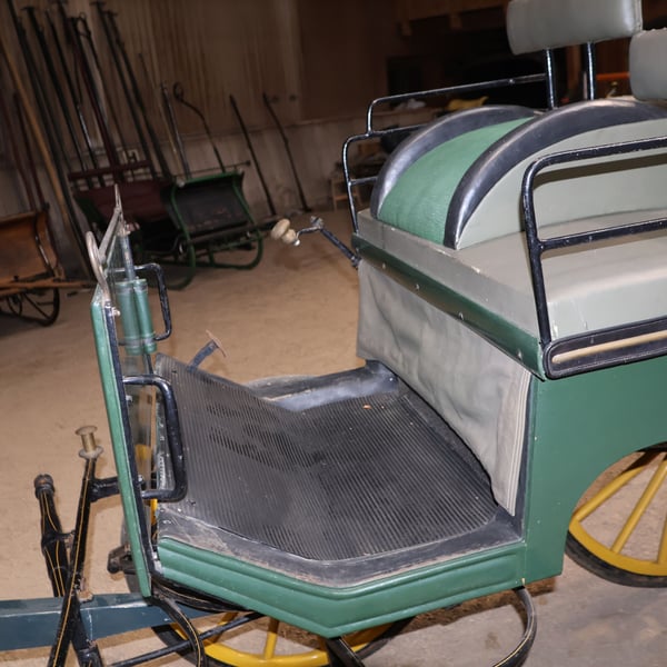 Schwere Wagonette Kutsche E. Wiez Zweispänner Scheibenbremsen Marke: E Wiez Kutschenart: Schwere Wagonette Gespannart: Zweispänner Pferdeart: Großpferde Zustand: Guter Zustand (Lack in gutem Zustand, Polster in gutem Zustand) Fahrbereit: Ja, Kutsche ist voll fahrbereit und fährt sich ohne Probleme Farbe: Dunkelgrün mit gelben Akzenten Lieferumfang: Siehe Bilder Sollten Sie weitere Infos wie Maße o.ä. wünschen oder weitere Bilder wünschen, können Sie uns gerne diesbzgl. kontaktieren! HINWEIS: Die Kutsche wird im Auftrag einer privaten Reithofauflösung verkauft. Sie erhalten von uns eine Rechnung jedoch unter §25a Differenzbesteuerung. Bitte haben Sie Verständnis, dass es durch den Verkauf im Auftrag zu Verzögerungen von 1-2 Tagen kommen kann, sollten Rückfragen von Ihrer Seite aus sein, da diese zuerst an den Eigentümer weitergeleitet werden müssen. Es ist noch ein Konvolut Deichsel o.ä. vorhanden wovon evtl. noch Teile zu der Kutsche passen würden. Vor Ort können Sie gerne sehen ob Sie eines der Teile für die Kutsche noch haben wollen. Details können bei einer Besichtigung gerne geklärt werden. Abholung bevorzugt! Eine Lieferung kann innerhalb eines gewissen Umkreises gegen Aufpreis durchgeführt werden, schreiben Sie uns hierfür bitte an um mögliche Details zu klären. 1- Monatige Rücknahme möglich. 12-Monatige Gewährleistung! Inkl. Rechnung mit Differenzbesteuerung nach §25a UStG. Bei weiteren Fragen oder Anregungen nehmen Sie gerne Kontakt mit uns auf. Weitere interessante Artikel finden Sie auf unserer Shopseite.