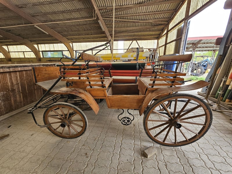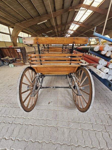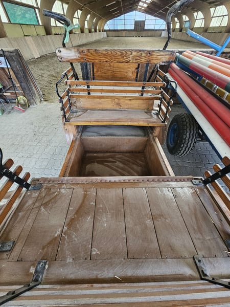Wóz konny z drewna Drewniane koła z oponami z gumy W zestawie z poduszkami Lokalizacja: 77731, wyłącznie odbiór własny Cena do negocjacji, sprzedaż prywatna! Całkowity dochód zostanie przekazany na rzecz klubu, na wsparcie szkolnych kucyków Z przyjemnością rozważymy zapytania z proponowaną ceną