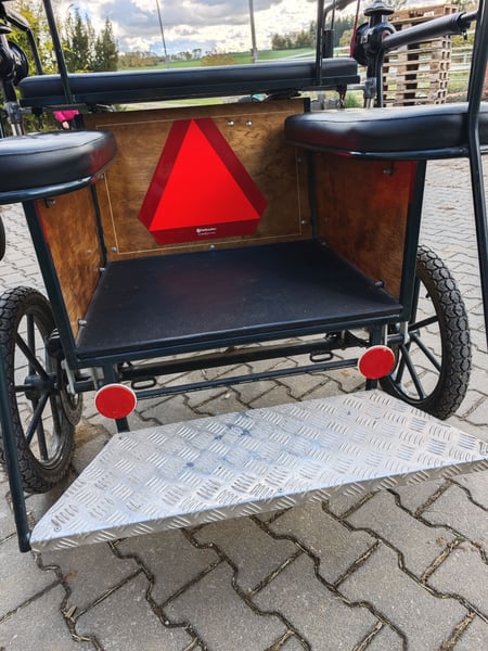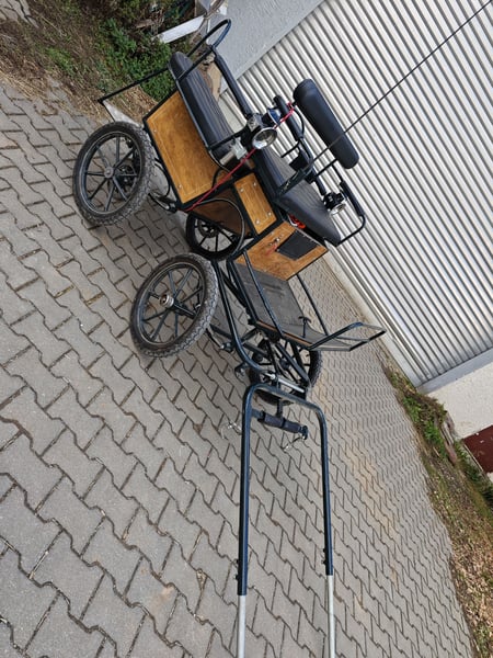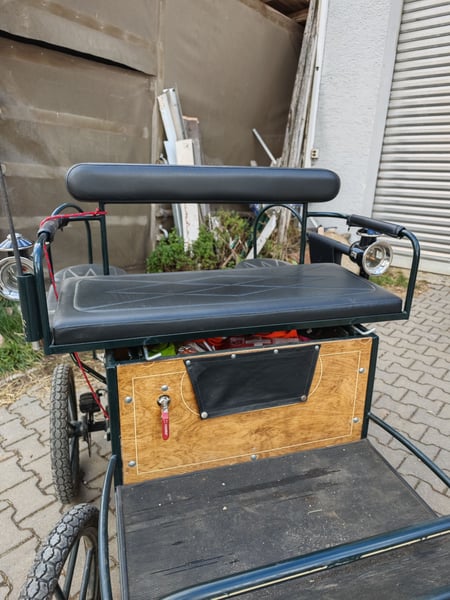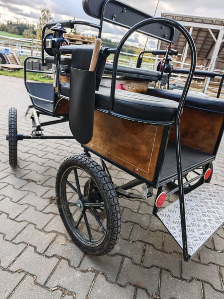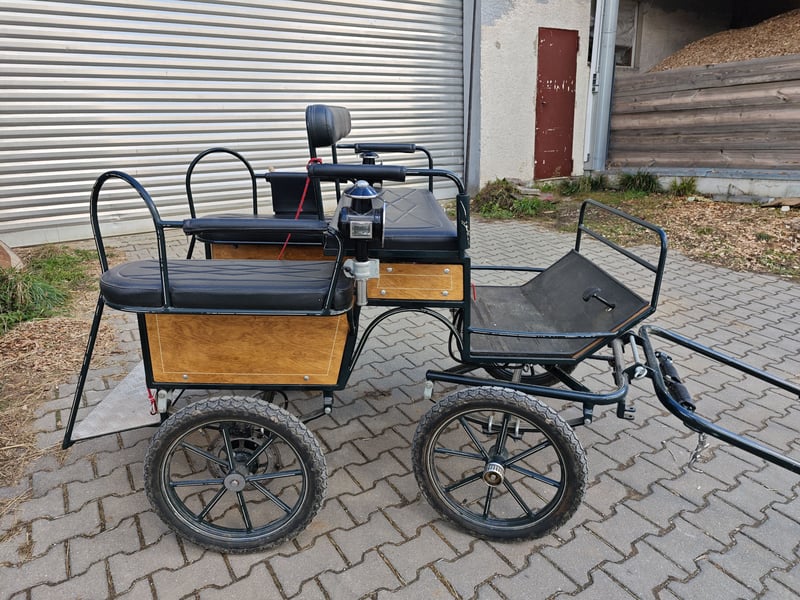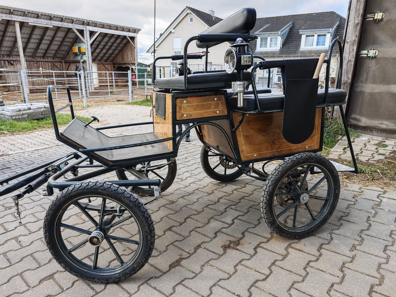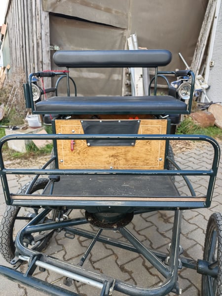 Verkaufe hier eine Shettykutsche mit Kutscherlampen, die Kutsche eignet sich für Shetty's ab einem Meter, ich habe ein Welsh A gefahren Stockmass 1.20 m. Die Kutsche ist fahrbereit, sie kann ein und zweispännig gefahren werden, Reparaturen liegen keine an, einspannen und losfahren, es sind die üblichen Gebrauchsspuren vorhanden. Kutsche steht immer trocken und eingedeckt in der Halle. Scheibenbremse hinten, mit Feststellbremse Spurbreite 1,10 m Bockhöhe 1.00 m Reifengröße 16" Zoll Sitzfläche vorne 0,90 m genügend Platz für zwei Erwachsene Das alter der Kutsche weiß ich nicht, habe sie selbst gebraucht gekauft. Ist aber mit dem was eine Marathonkutsche haben muss ausgestattet. Da es sich um einen privaten Verkauf handelt, nach Paragraph §13 BGB, werden keine Garantie und Gewährleistung und Rücknahme übernommen .