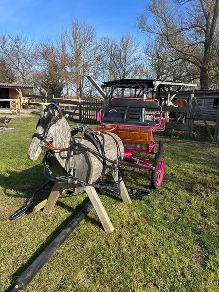 Wir bieten eine sehr gepflegte und voll funktionstüchtige Kutsche inkl. Zubehör an. Einspänner/ Zweispänner Einmal komplettes Geschirr für Pony Holzpaneele sehr gut erhalten, kein aufquellen da sie nur trocken stand. Die Polsterung ist unbeschädigt und nicht durchgesessen. Spurbreite: 127cm Bockhöhe: 110cm