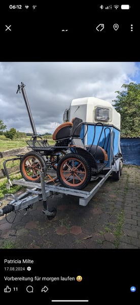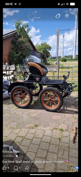Verkaufe hier wegen Umstieg meine Kutsche im Juni 24 gekauft ,halbe Session gefahren, danach stand sie trocken. Sie hat 4 Scheiben bremse,19 Zoll Räder ,110 Bockhöhe und eleptik Feder,keine Luftfederung. Sie wurde mit 2 Shettys 103/106 problemlos gefahren. Sie steht in Selm ,Preis ist VB . Einspänner Schere wurde nie genutzt