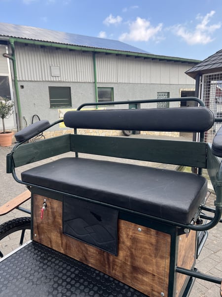 Verkauft wird ein schöner Geländegig für Pony/Pferde ab 1,45 m bis 1,70 m. Er hat die üblichen Gebrauchsspuren, siehe Fotos. Toll ist, dass er eine verstellbare Sitzbank hat, sowie gute Bremsen und Luftfederungsbalken. Die Bereifung ist noch fast neu. Da er ein Gig von der Marke KUBE´s Kutschenparadies ist, sind später auch evtl. Ersatzteile mal kein Problem. Ich hatte ihn für mein schweres Warmblut und bin jetzt auf Kutsche umgestiegen. Da es sich um einen Privatverkauf handelt, gebe ich keine Garantie. Für Rückfragen, Besichtigung und Verkauf bitte unter Mobil: 0151-70055772 (gerne auch per WhatsApp) melden. Abholung wäre in 36148 Kalbach-Heubach P.s. der Gig passt in einen Pferdeanhänger, meine Empfehlung wäre ihn mit Spanngurten zu befestigen.