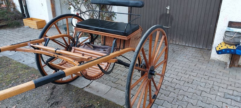 Sehr schöner Gig mit Korb und Bockdecke zu verkaufen. Raddurchmesser 120cm. Vollgummi, super gefedert. Selbstabholung oder Lieferung bis 100km möglich.