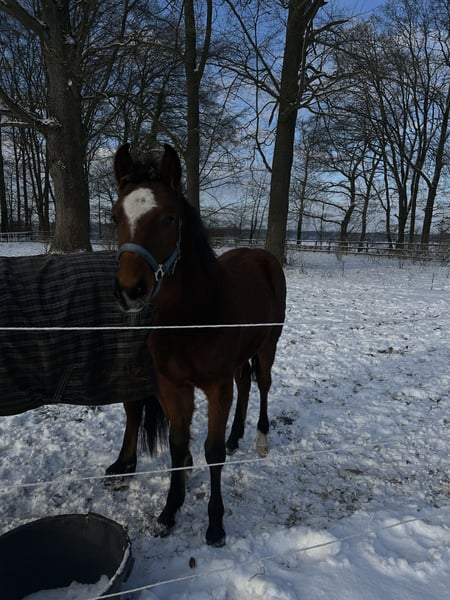 Verkaufe ein sehr verspieltes Hengstfohlen namens \"Boris\", geb am 07.04.2025. Seine Mutter ist eine Lewitzerstute mit einem Stm von ca 1,48 m und sein Vater ist ein staatlicher Appaloosahengst mit einem Stm von ca 1,55m. Somit denke ich wird er sich bei einem Stm von 1,50 einpendeln. Er ist halfterführig, kennt andere Pferde und Hunde, liebt Wasser und kennt auch die Halle. Hufe geben klappt meistens sehr gut, aber er ist ja noch ein Baby und testet ob er es auch wirklich muss. Er ist bis jetzt nur 1 mal mit dem Anhänger gefahren, allerdings nur mit seiner Mutter. Alleine fahren kennt er somit noch gar nicht. Ich könnte Euch noch soviel zu ihm erzählen, wenn wirkliches Interesse besteht,dann traut Euch mich anzuschreiben. Boris und ich beißen nicht 😉