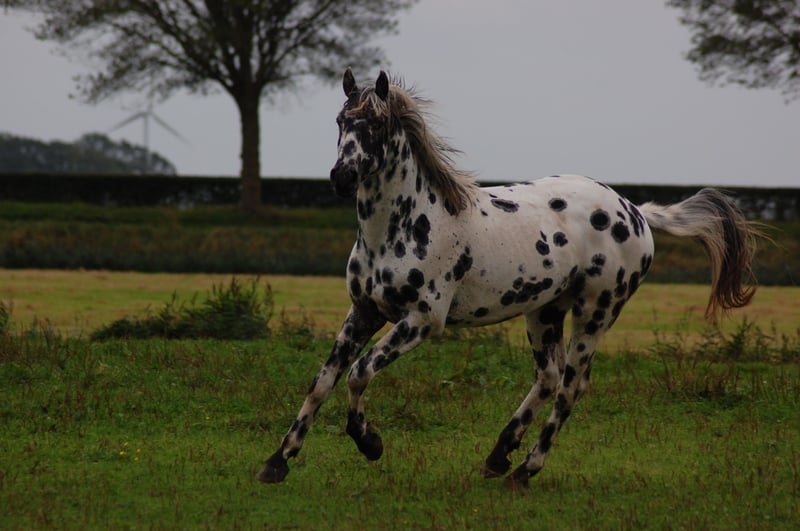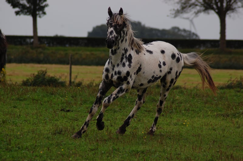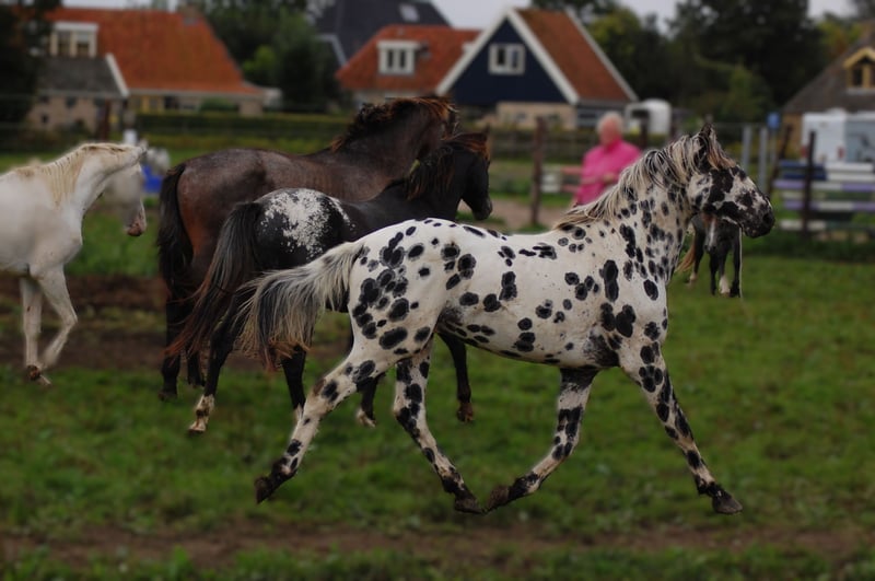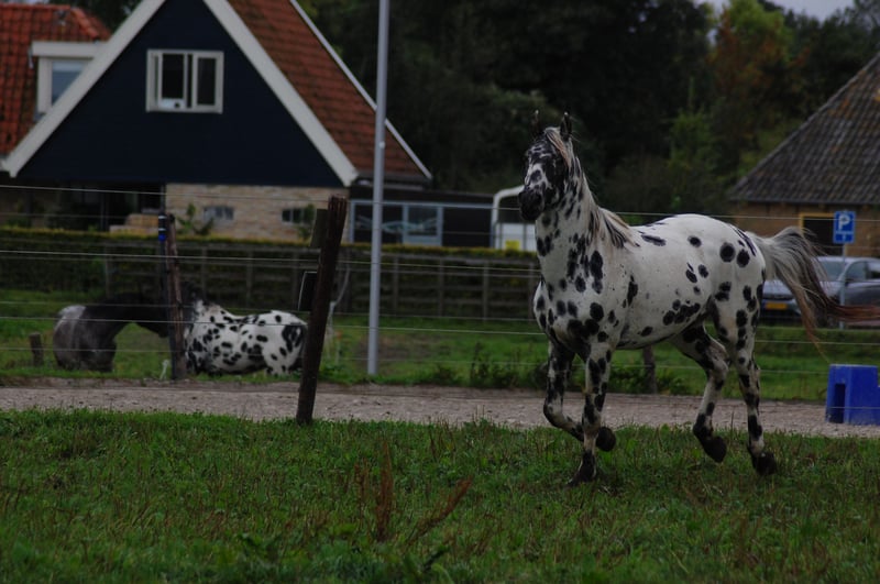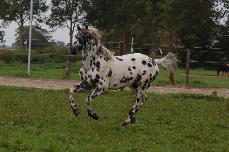 Dit paard steelt de show met zijn uitstraling en geweldige beweging. Uit de beste Nederlandse appaloosa bloedlijnen: Vader Nederlands 1e Premiekampioen Peru's First Class (met veel KWPN-bloed, zoals Krack C en Jazz) Moeder Ster merrie, reserve kampioen Moeders Vader 5-voudig Nederlands Kampioen Palousa Convenance (zijn vader is Gibraldi, de grote zwarte Grand Prix hengst die naar de Wereldbekerfinale ging met Edward Gall in Las Vegas) Heel lief en liefdevol karakter, een beetje verlegen. Kan aan een halster worden gereden, maar is nog groen in training. Wordt altijd in een groep jonge hengsten gehouden, met mensen om zich heen. Veel vrije beweging in de wei. Hij is nu op zoek naar een nieuwe eigenaar die met hem wil werken. Hoewel zijn moeder ook dressuurmatig gefokt is, houdt ze ook van springen, dus ik verwacht dat dit paard ook allround ingezet kan worden. Hij is een showman, hij is geweldig voor de camera en steelt de show met zijn indrukwekkende uitstraling. Ook andere jonge appaloosa paarden en pony's te koop.