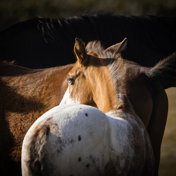 R Mighty Theo ApHC stallion 1,58 m tall https://www.allbreedpedigree.com/mr+mighty+theo PSSM 1 N/N MYHM N/N HERDA N/N GBED N/N HYPP N/N EMH N/N Splashed White N/N Ee, aa, LP/LP (black Snowcap) Purebred for the leopard gene Theo aka "Joker" is a very gentle, sensitive young stallion who still has his career as a riding horse ahead of him. He is bombproof and extremely uncomplicated. He has a stable foundation, a lively, ground covering trot and a beautiful 3-beat canter that is well set for his age. He has good uprightness and a large frame. He will be available with fresh semen at the Steinsberg stallion and breeding station in 2024