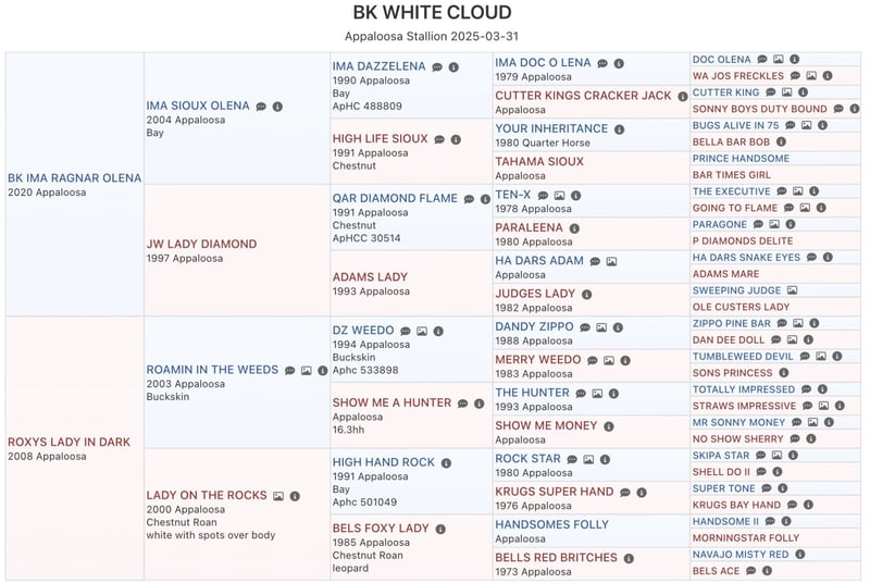 Te koop is een prachtig, atletisch Few Spot hengstveulen met de naam: BK White Cloud. Deze jonge man is zeer mensgericht en kent het veulen ABC. Zijn vader is de door ons gefokte BK Ragnar Olena, een goedgekeurde hengst van onze Ima Sioux Olena, die ook goedgekeurd is. Zijn moeder is onze Roxys Lady in Dark, al haar nakomelingen zijn gehuldigd. Dus een zeer interessant veulen voor fokkerij en sport. Inclusief: COR en Equitenpass van de APHCG.