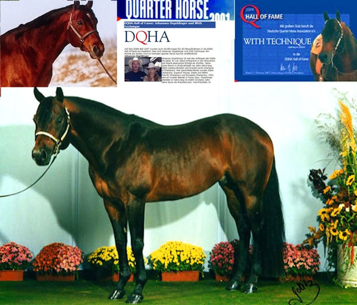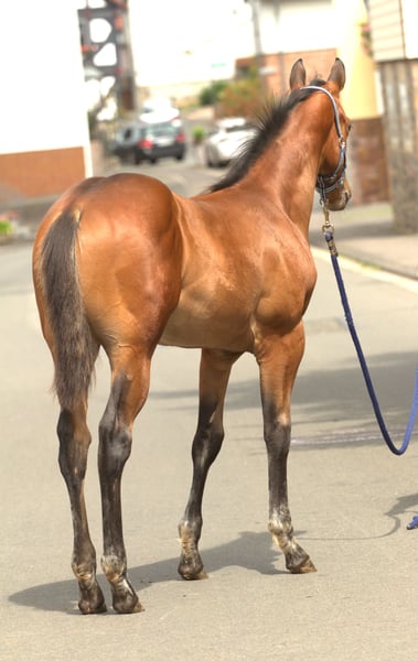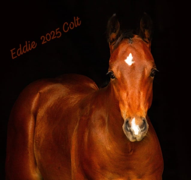 Eddie ist ein edles Hengstfohlen mit hervorragender Western Performance Abstammung. Sein Name "RA Zippin With Technique" verweist bewusst auf seine stark vererbte Quarterhorse-Blutlinie mütterlicherseits: Seine Dam "Shado With Technique" stammt aus einem ebenfalls kastanienbraunen, und sehr erfolgreichem Quarter-Horse Hengst namens "With Technique". Dessen "Sire" war ein ebenso erfolgreicher klassisch braun gefärbter AQHA Hengst namens Zippin Bonanza Flash. With Technique ist von Johannes Orgeldinger (Jomm Ranches) früh importiert und von der Familie Jagdfeld sehr erfolgreich vorgestellt worden. Er erreichte unter anderem einen Superior Pleasure-Titel, (wie sein Vater Zippin Bonanza Flash vor ihm). Als Legende der deutschen Quarter-Horse-Szene wurde er in die DQHA-Hall of Fame aufgenommen. With Technique's Potential zum Erfolg dankt er sicherlich seine Abstammung, die dafür bekannt war, seine Nachkommen so zu segnen. Dies ging noch zurück auf den berühmten Zippo Pine Bar (AQHA Hall of Fame), der ausgezeichnet wurde als: "All Time Leading Sire of Performance Register of Merit Quarter Horses". Diese Wahnsinns-Blutlinie begann mit seinem Vater Zippo Pat Bars (AQHA Hall of Fame) und lebt noch heute weiter. Aus derselben Mutter-Linie wie Eddie stammt auch der Ausnahme Appaloosa Hengst PM Royal Technique. Früh wird erkannt, was diese Blutlinie in sich trägt und, vorgestellt von Linda Leckebusch-Stark, führte dies zu einer langanhaltenden Erfolgs-Blüte, mit mehrfachen ApHC EM-Titeln, und auch bei der EWU, wo "Ryder" auch gegen viele andere Rassen wiederholt seine Fähigkeiten bewies, was den Stellenwert der Appaloosas sichtlich anhob. Eddie's Mutter Shado With Technique (Züchter Fam. Drees) hat mehrere Halb- und Vollgeschwister von Eddie produziert die erfolgreich auf Shows vorgestellt wurden - unter Sattel und im Halter (European Champions). Diese Erfolgslinie ist noch nicht verblüht: manche junge und genau so schöne Geschwister kommen sicherlich noch dazu. Eddie's Vater Mr Go Right "Rusty" (ApHC/ApHCG) ist ein erfolgreicher Allround-Appaloosa Hengst der "Top 5 in the World" in "Open Aged Halter Stallion", erreichte, sowie "High Point Horse" Titeln. Er ist auch in EWU-Klassen erfolgreich gewesen, und mehrfach "State Champion". Rusty's Abstammung beinhaltet auch viele Hall of Famers, meist Performers wie High Sign, aber auch ein wenig Halter - 2x Goer und Romans Straw Man liegen weiter zurück. Durch mehrere Reining, Cutting and Cowhorse Linien ( Ima Dazzalena / Ima Poco Olena (Hall of Fame) zeigt er besonders Talent für Ranch Riding. Seine Linie ergänzt sichtlich die eher Pleasure und Halter orientierte Linie der Mutter. Eddies Potenzial: beste Blutlinien in die Wiege gelegt, kombiniert mit exzellentem, glänzendem Exterieur für einen Wow-Effekt. Eddie ist schön und ausdrucksstark, korrekt und harmonisch bemuskelt aber dazu auch charakterlich klug, freundlich und lernbereit. Dies sind alle beste Voraussetzungen für ein prächtige Zukunft für Eddie mit dem richtigen Partner. Obwohl nicht unbedingt ein Muss, wäre Eddie besonders für Shows geeignet: Halter, Pleasure, Western Riding, Ranch Riding oder Allround. Eddie wächst in unserer Familie auf, ist bestens geprägt und zeigt schon jetzt Talent. Besichtigung möglich: Mutter, Vater und zwei Vollgeschwister können auch angesehen werden bei uns in Hessen. 5 Panel N/N