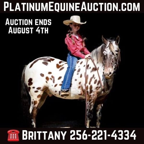 ONLINE AUCTION Place your bids at www.PlatinumEquineAuction.com Starting Bid $3500 Auction ends August 4th, 2024 Need a new saddle? Check out White Rock Saddles on our website or Facebook! Are you looking for one of the sharpest most versatile ponies to ever hit the market? If so checkout our guy Bingo!!!! Bingo is an 8yr old POA gelding standing in at 13.1hh and is built like a big horse. Bingo is as handy broke as any pony you will find, he will W/T/C, picks up his leads with ease, one hand turn, nice collect stop, and a reverse like a zero turn. Our daughter has ridden Bingo through downtown with the parade going on and fireworks shooting with no hesitation at all. He has been trail ridden all over northern Alabama and Tennessee with nothing phasing him. Bingo is one of those “once in a lifetime” ponies that anyone would love to have in their barn! To meet Bingo or just to to learn more about him call Brittany Little 256-221-4334. ONLINE AUCTION Place your bids at www.PlatinumEquineAuction.com Starting Bid $3500 Auction ends August 4th, 2024 Need a new saddle? Check out White Rock Saddles on our website or Facebook!