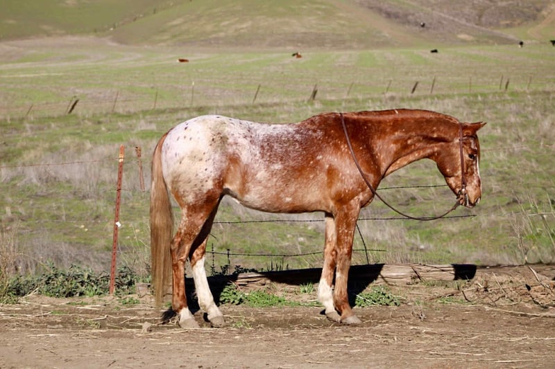 "AVAILABLE ON ONLINE HORSE AUCTION AT www DOT PlatinumEquineAuction DOT com BIDDING OPEN NOW thru SUNDAY | FEBRUARY 22ND! *Final price will be determined on auction site* CONSIGNOR CONTACT INFO: Cheyenne Rey 831-537-8746 LOCATION: Bitterwater, CA Biggs, a 10-year-old grade Appaloosa gelding who truly embodies everything a dependable trail partner should be. Stands 14.2 hands high, Biggs may be compact, but he carries himself with the confidence of a seasoned veteran. Biggs is an expert on the trails. He has been ridden straight from the house, through town, and all the way to the beach, where like most of us, is happiest by the water. He has zero spook; nothing flusters him, and he remains calm, cool, and collected in every situation. Whether faced with traffic, farm equipment, wildlife, or unfamiliar terrain, Biggs approaches each new experience with quiet assurance. He is a true “point-and-go” type, Biggs never hesitates about direction and willingly travels wherever he is asked, making him an ideal companion for riders who value reliability. He even has a few fun tricks to show off—he will lay down with a light cue and sit up like a puppy, adding a bit of charm to his already lovable personality. Under saddle, Biggs is responsive and well-mannered. He neck reins lightly, listens to all cues with an easy, willing attitude, and moves with a nice medium-soft pace that keeps riders comfortable for hours. In the arena, he knows his leads, carries his head low, and stays relaxed and steady. On the ground, he is good for handling and stands easily for grooming, tacking, and everyday care. Biggs has been around cows, farm animals, traffic, and all sorts of noises, making him well-seasoned for the weekend warriors, or everyday riders. He is absolutely safe for anyone to ride, and For riders seeking a trustworthy, unflappable, and fun trail horse with a willing heart, he would excel in a home for someone looking for an endurance trail, or trail obstacle show horse! He loves to go out and take long rides! He is located in Bitterwater, CA. for more information please contact Cheyenne at 831-537-8746.