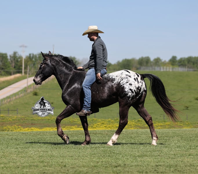 Don’t tell Breyer but one of their horses came to life!!! Dan is the dream horse of all dream horses, the most unique unicorn that you will find! Not only is he a snowcapped appy that is painted to perfection he is also gaited to perfection! History: Dan was raised here locally, and we bought him when he was just a colt. He was started and trained by the best in the business and went on to complete the natural horsemanship program where he learned several tricks (side passing to a mounting block, laying down for mounting and setting on his rump) doing the natural horsemanship program also allowed Dan’s personality to shine as he is a total love bug and is everyone’s best friend! (we included some pics of him when was 2-4 years old on his ad) Now Dan as a 9 year old, is a well built registered Pleasure Saddle Horse gelding that is standing around 15.1hh. He has the good looks, the coloring and (the best part) the mindset that anyone could ask for! Not only does he look cool, he has all of the other boxes checked as well… he is Mr. Personality, as friendly as they come, loves attention and is very calm natured! Dan has been ridden by every member of our family all the way down to our 6 year old and we’ve trail ridden him double. He has been ridden down the highways and he is traffic safe. Dan is great on trails and he will cross creeks, ditches, logs and navigate rough, rocky areas. He has a natural gait that is super smooth, he will lope, has a good stop, he neck reins and backs! He has been exposed to all kinds of wildlife such as deer or turkey or other animals like cows or dogs and will go anywhere that he is asked too. He has been ridden many miles in the mountains of Eastern Kentucky and encountered every obstacle possible on the trail. He has been on several week long camping trips. He hauls well and picket line ties also. He will go up or down even the steepest slopes, across deep creeks, over downed trees, and over all types of rough terrain while still being sure footed. Dan has been ridden at night, lead dogs and been coon hunted off of. He has no bad habits! He truly is the horse of lifetime and we want anyone that is interested in getting to know Dan to just give us a call and everyone is welcome to come see him in person as well! Feel free to call Eric 606-308-2461 with any questions. Go to visit our website for more pics and a video www.AdamsHorseAndMuleCo.com AHAMC has been in the horse business and sold horses over the internet since 2005. We have a long track record of success with hundreds of happy customers. We work hard to match riders with the correct horses and specialize in beginner safe, family friendly horses that have been used and checked out by our family! We can set up transportation anywhere in the US and look forward to working with you.